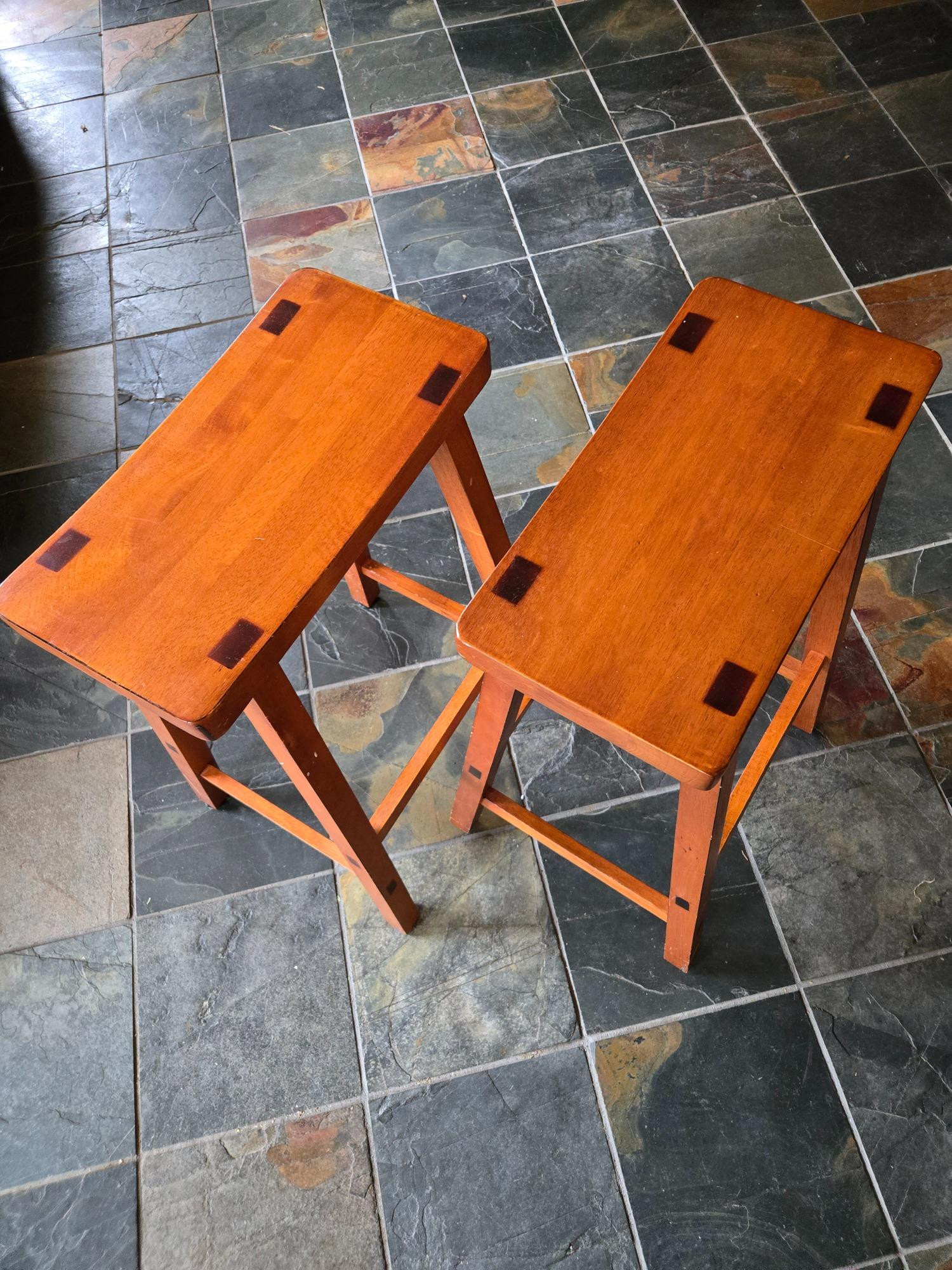 Oak Finish Bar Height: 18”x9”x29” Set of saddle seat stools offers an economical yet stylish