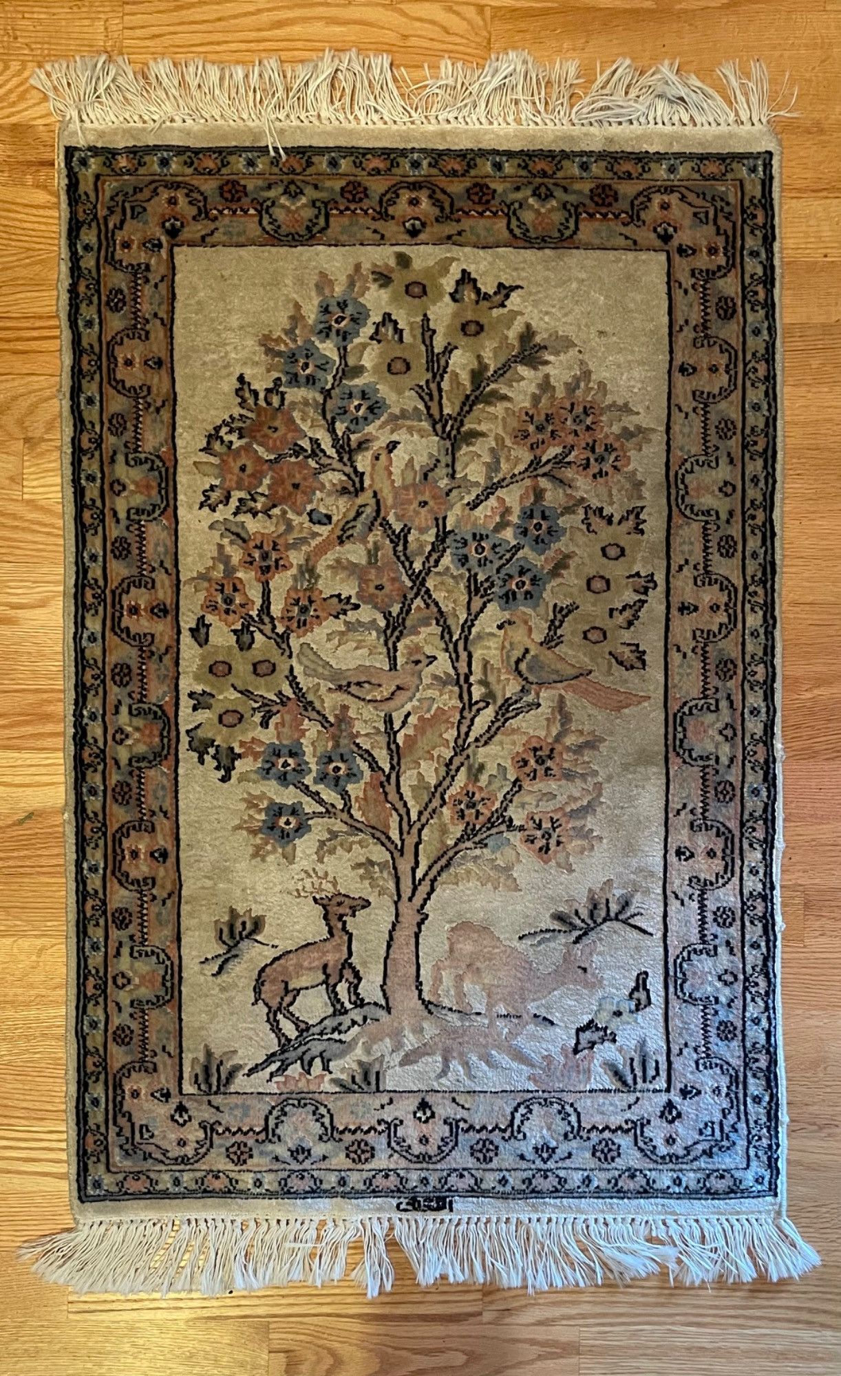 Tree of Life Rug, 39" x 29 1/2" without fringe. No brand tag Rug needs some cleaning, some wear on fringe