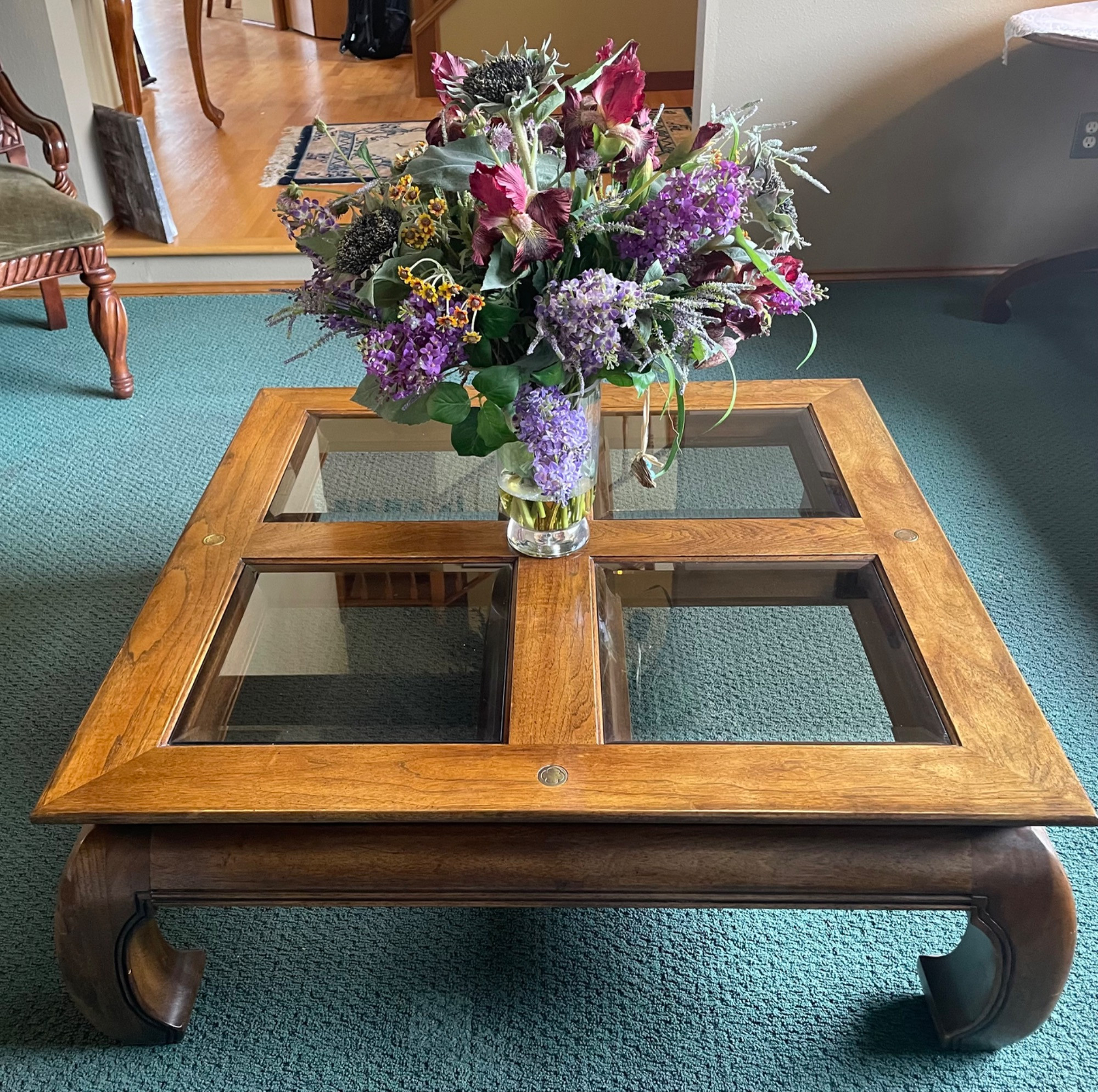 Lot # 57 - Heritage Bow Leg Coffee Table & Flower Décor