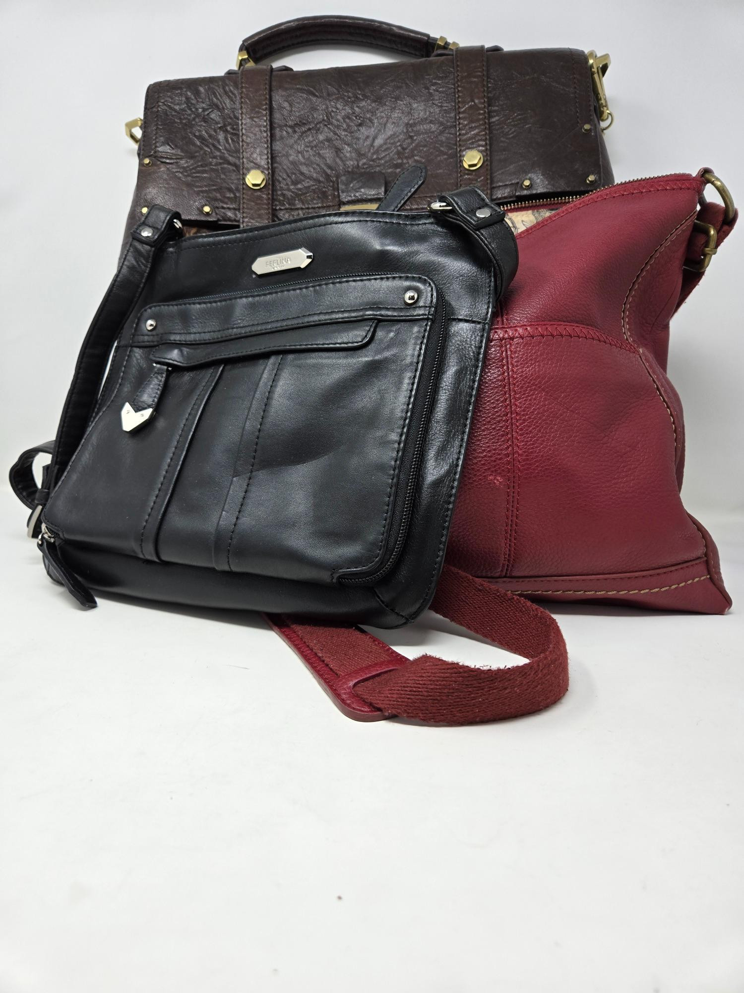 Crossbody Bag and Red Sak Lucia Crossbody 11in L x 2in W x 11.5in H; Drop: 23 inches; Weight: 0.99 lb. Leather Antique silver tone hardware Adjustable Repreve webbing crossbody strap Premium leather from a Leather Working Group Gold-rated