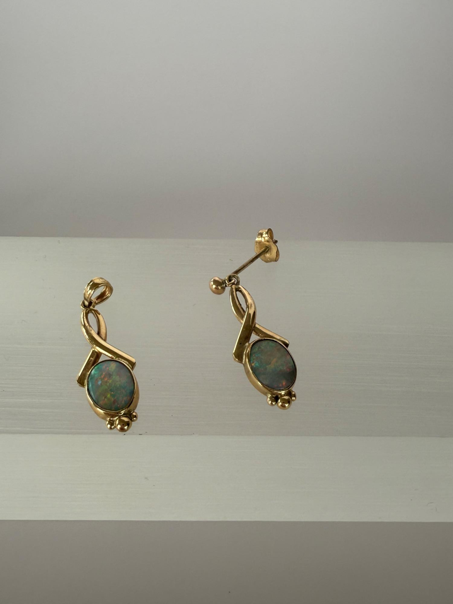 14K Australian Opals in earring setting and pendant One earring only and one pendant.