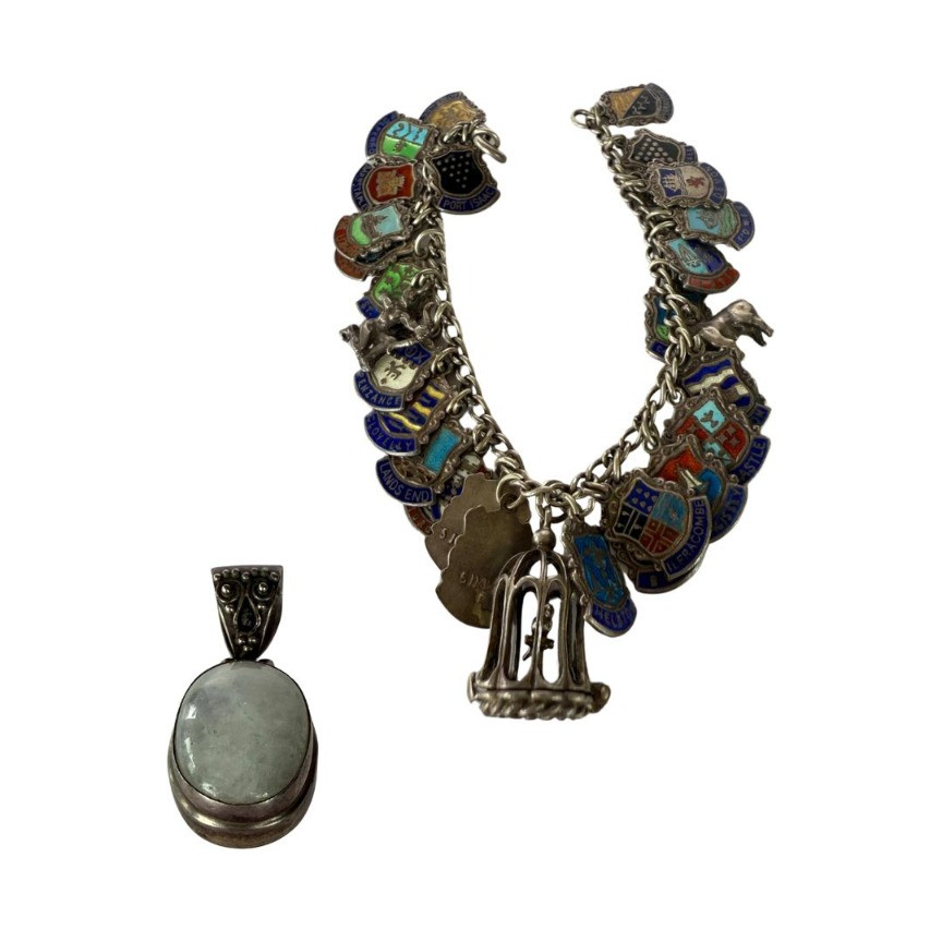 Lot # 56 - European Travel Sheilds All Sterling Charm Bracelet and Sterling Ring