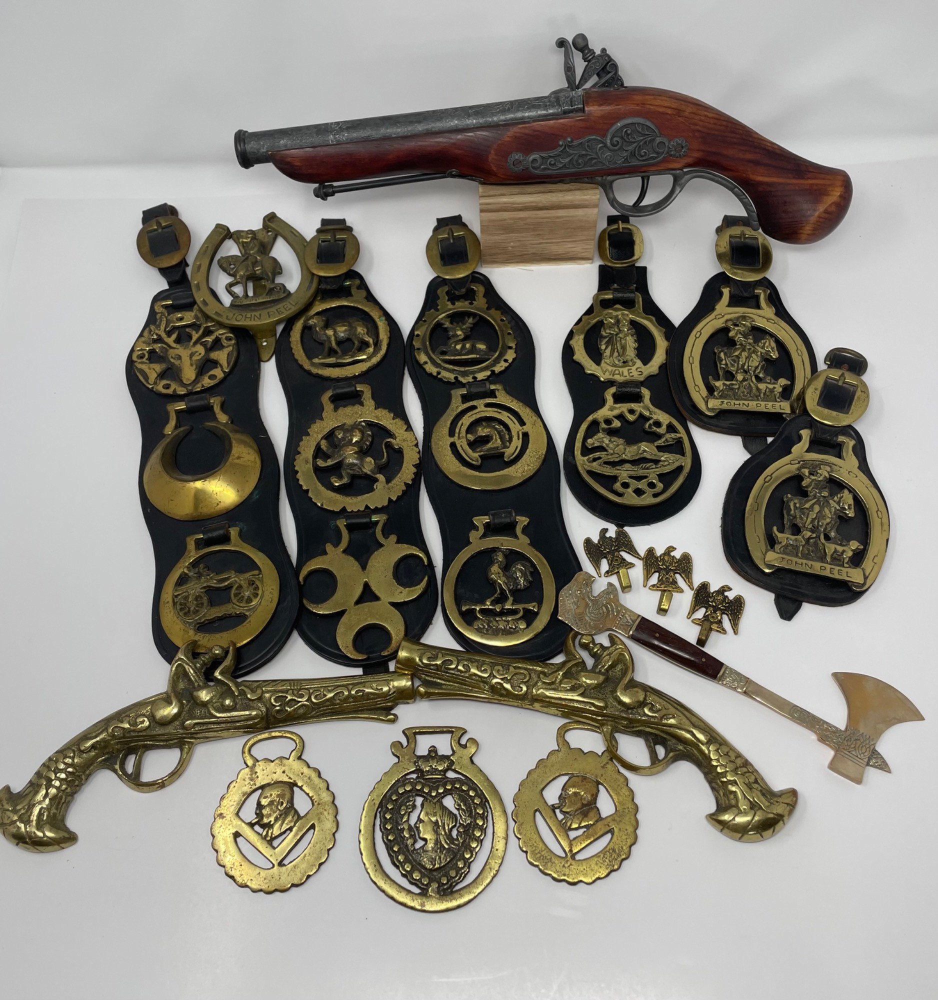 Lot # 185 - Brass Horse Saddle Medallions, Gun Décor, Other Brass Items