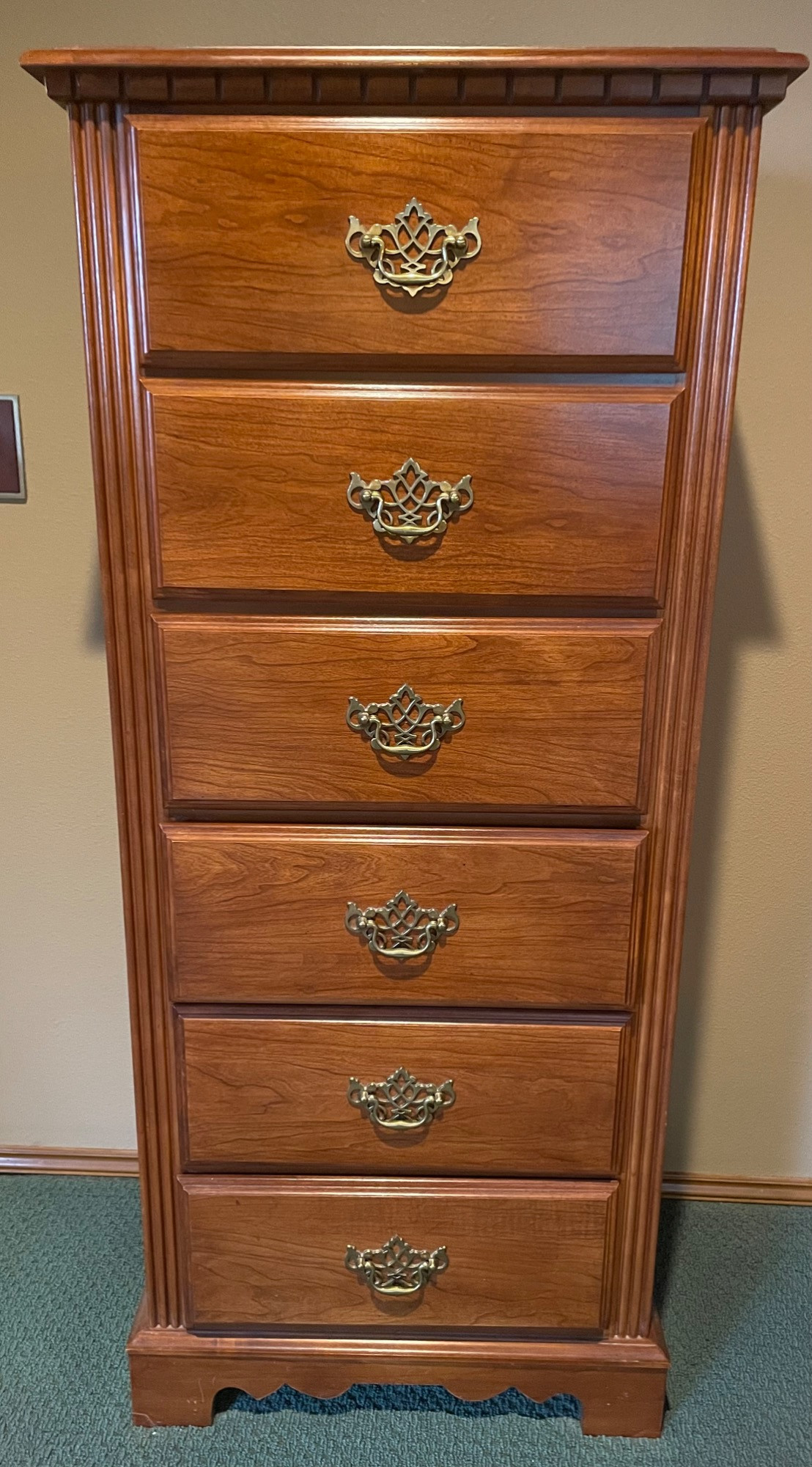 Dress measures 54 1/2" high x 24" wide x 16" depth Great condition Dresser on 2nd floor, be prepared to carry down 13 stairs, there is no assistance, please bring 1-2 people to help