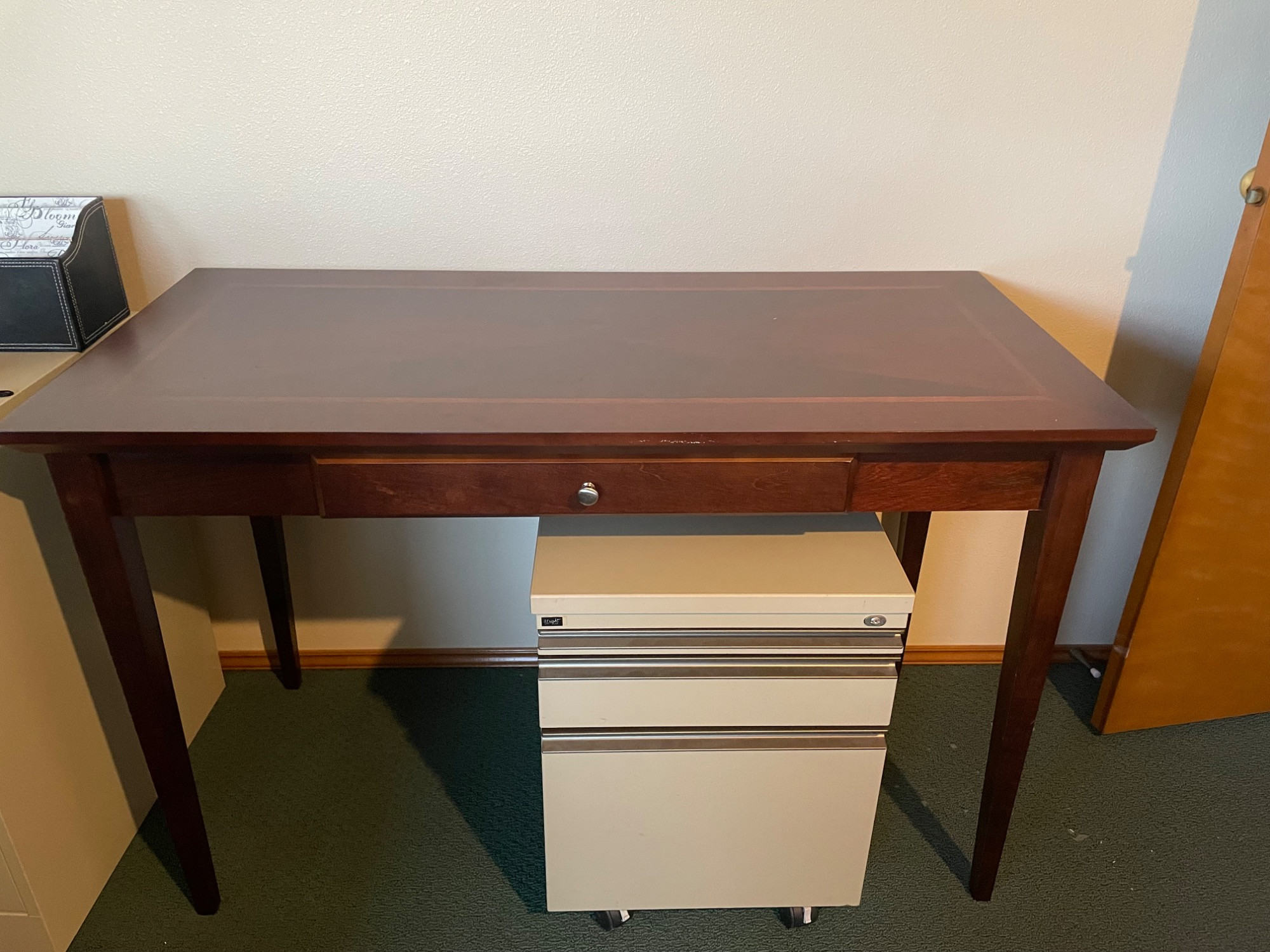 Desk has one drawer. 47” x 22 x 30 1/2” high