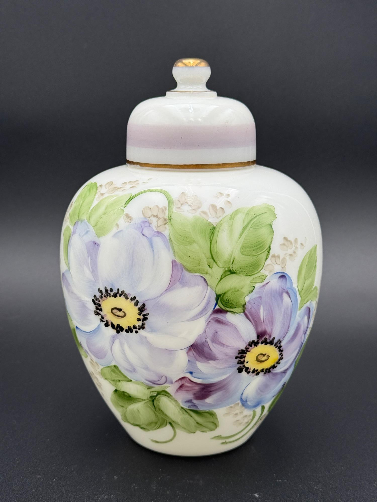 Lot # 2 - Vintage Hand-Painted Milk Glass Ginger Jar – Signed by B. Kraff