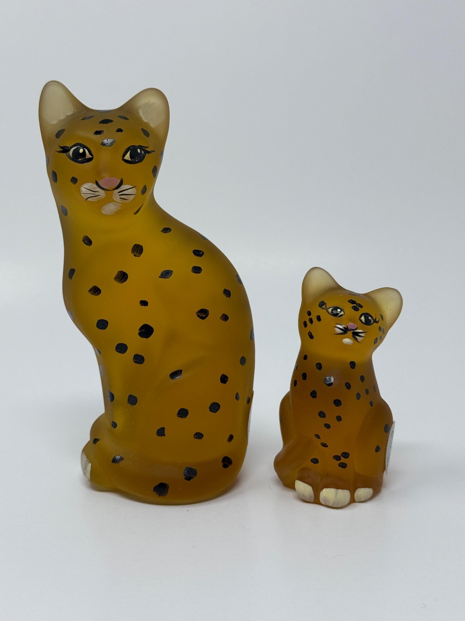 Lot # 35 - Fenton Hand-Painted Cheetah Cat Figurine Set – Signed – 5” & 3”