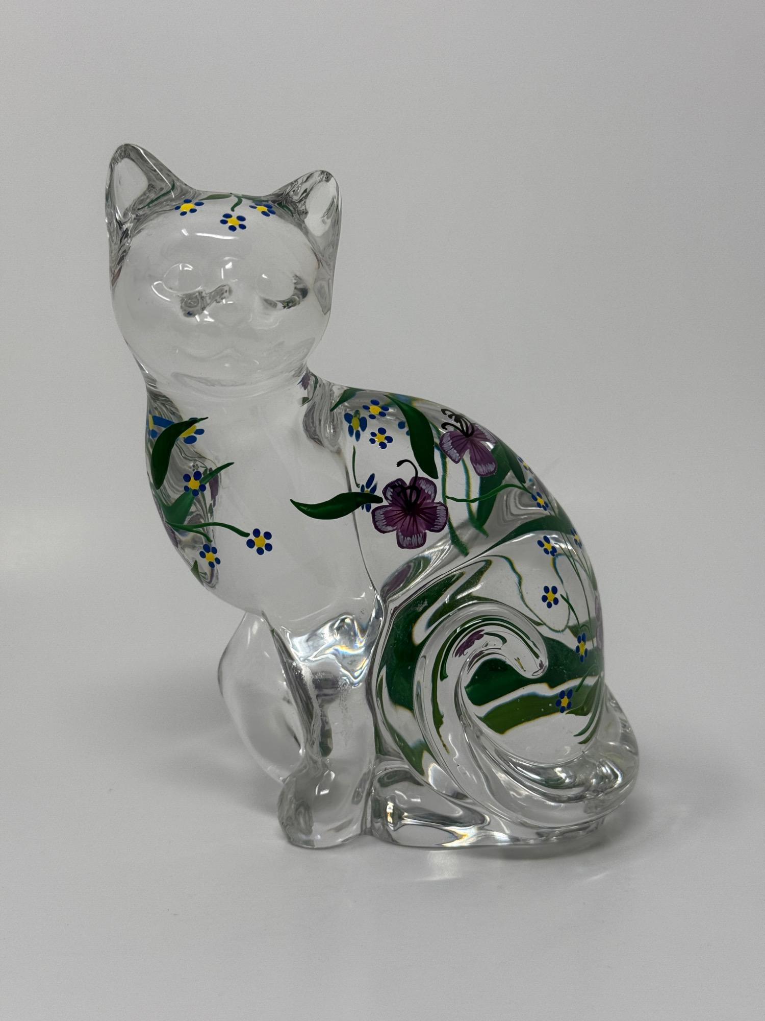 Lot # 37 - Lenox Hand-Painted Crystal Glass Cat Figurine – Floral Design, 5.5”