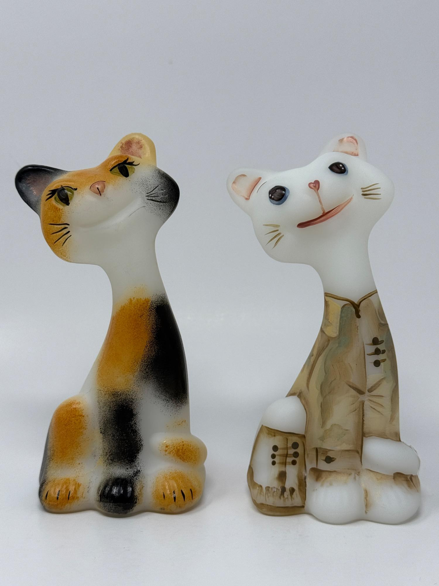 Lot # 47 - Fenton Hand-Painted Glass Cats – Kitty Riley & A. Van Zile (2007)