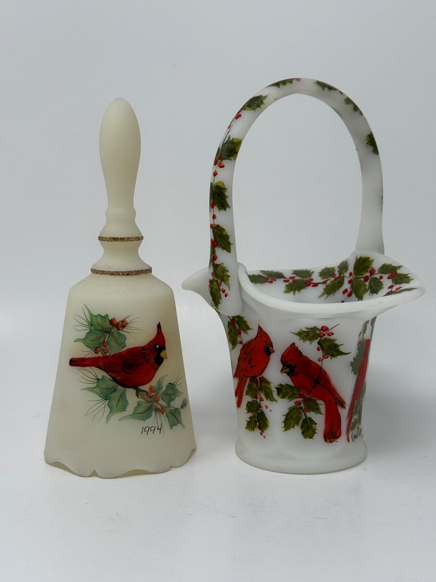 Lot # 59 - Fenton Hand-Painted Cardinal Bell & Basket – Jackson & Piper Signed