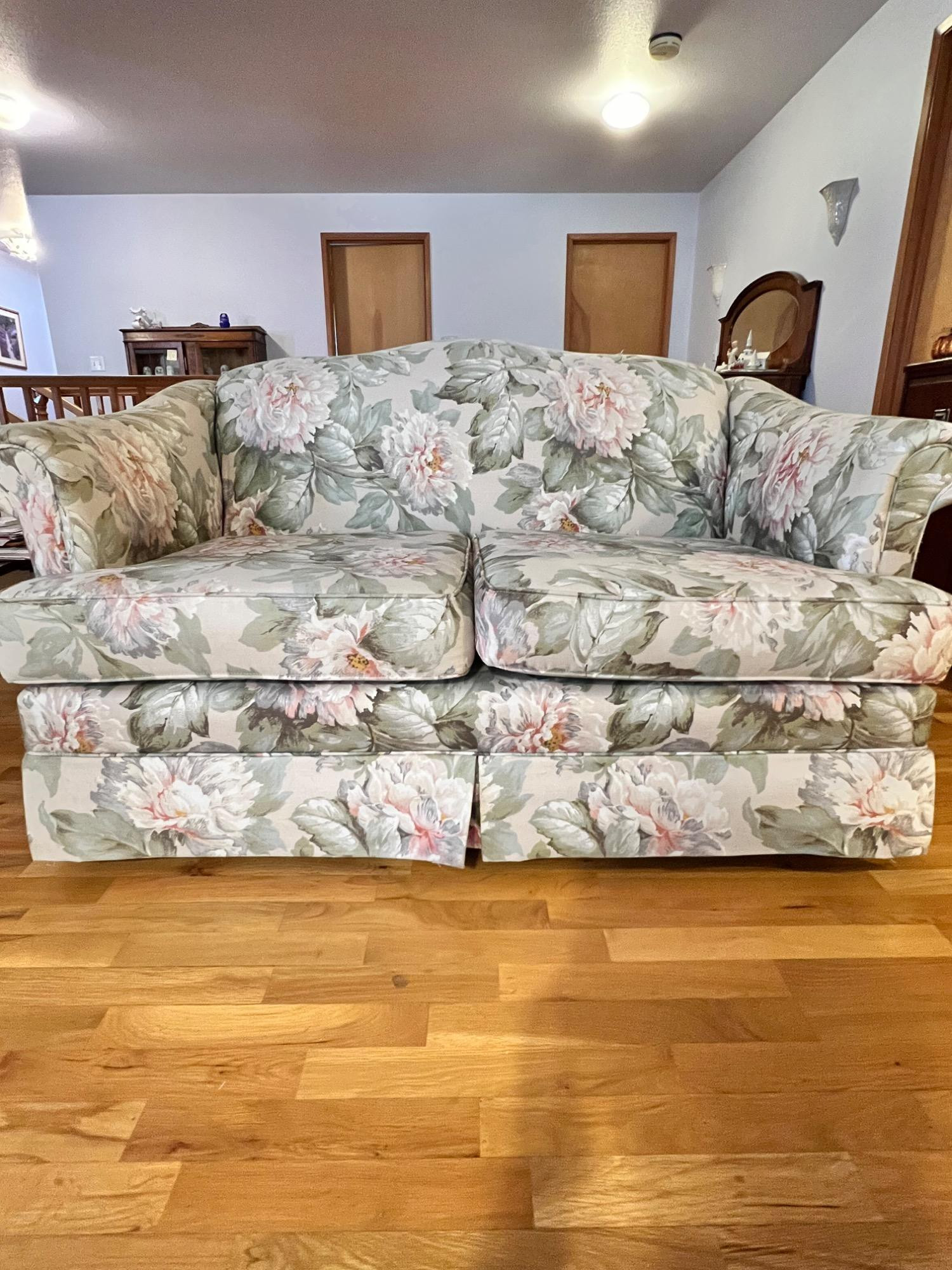 Enhance your living space with this beautiful vintage-style floral loveseat, featuring a charming floral print in soft pink, cream, and green hues. Designed for both comfort and aesthetics, this loveseat brings a warm, cottagecore-inspired feel to any room. Features & Details: Timeless Floral Design – Soft, watercolor-style floral upholstery with lush greenery for a cozy, inviting look. Dimensions: 58” W x 33” D x 33.5” H (Seat height: 18”)