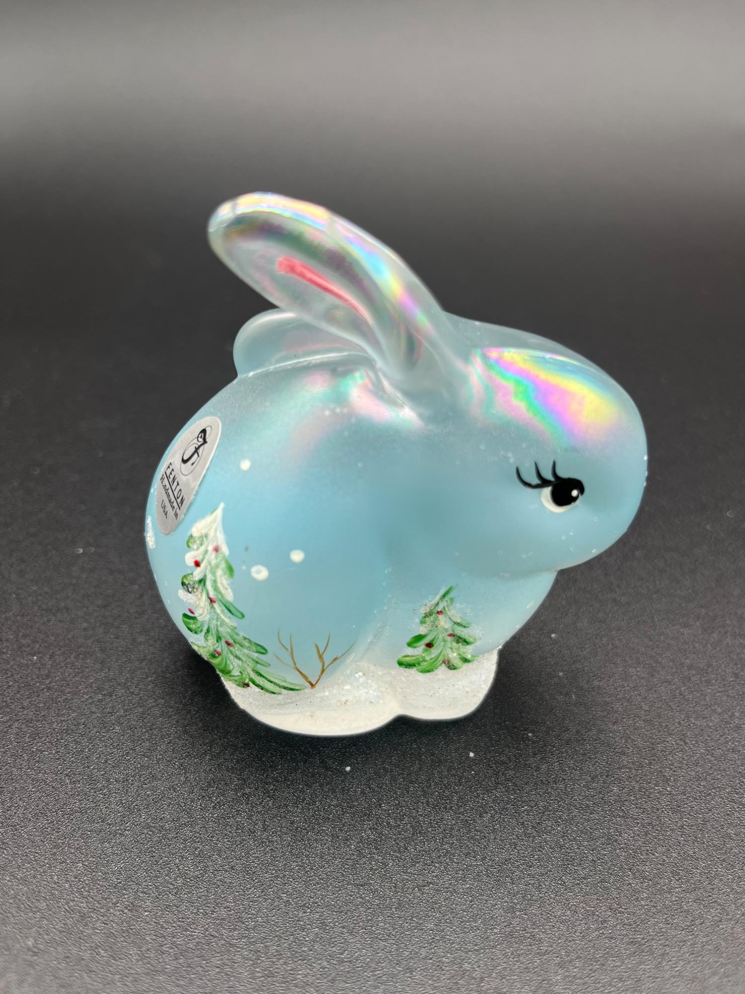 Lot # 78 - Fenton Blue Snow Bunny – Hand-Painted Glass Figurine