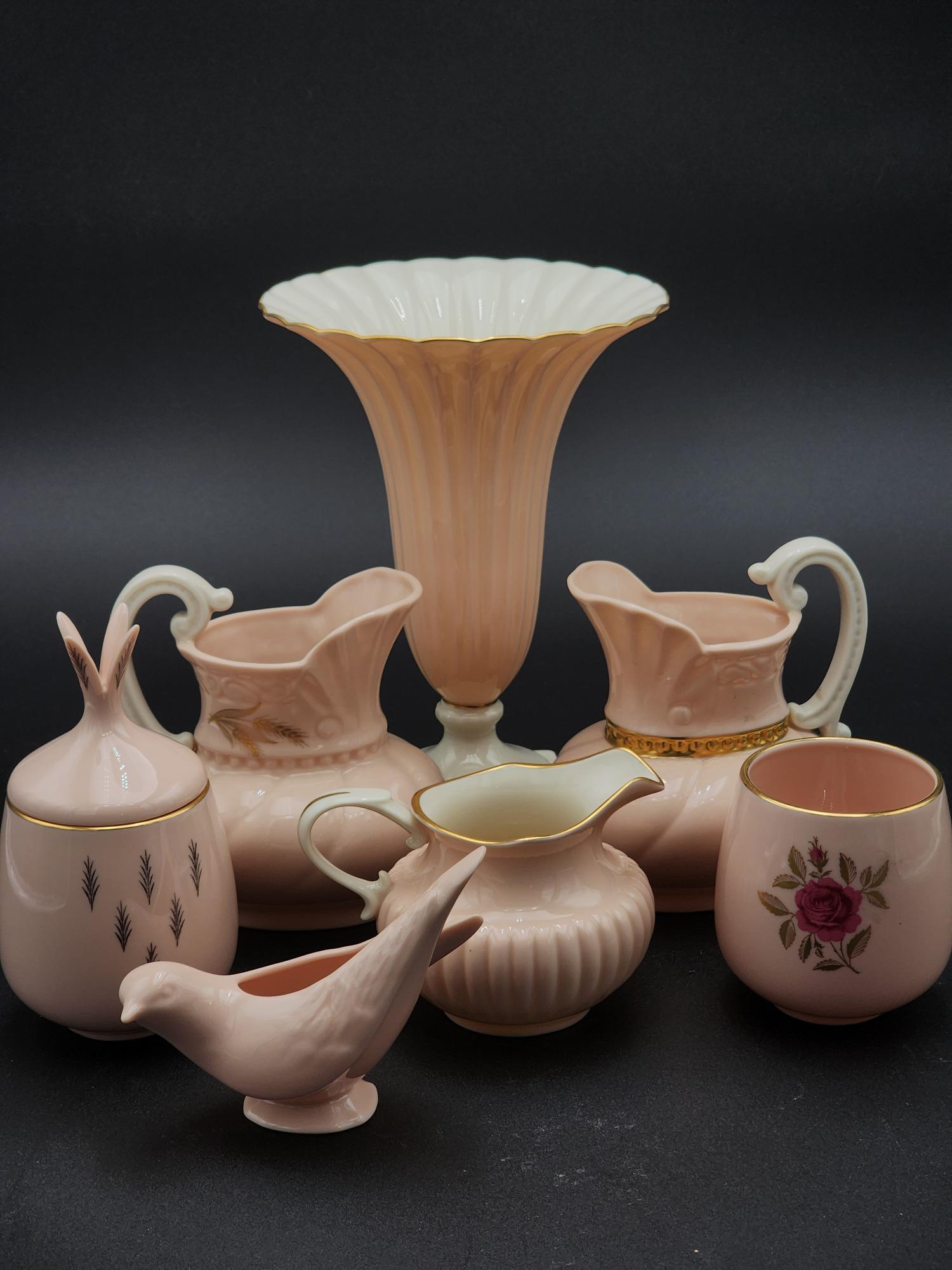 Lot # 127 - Lenox Peachy Pink Vase and Pitcher Blue Mark Made in USA Set Of 7