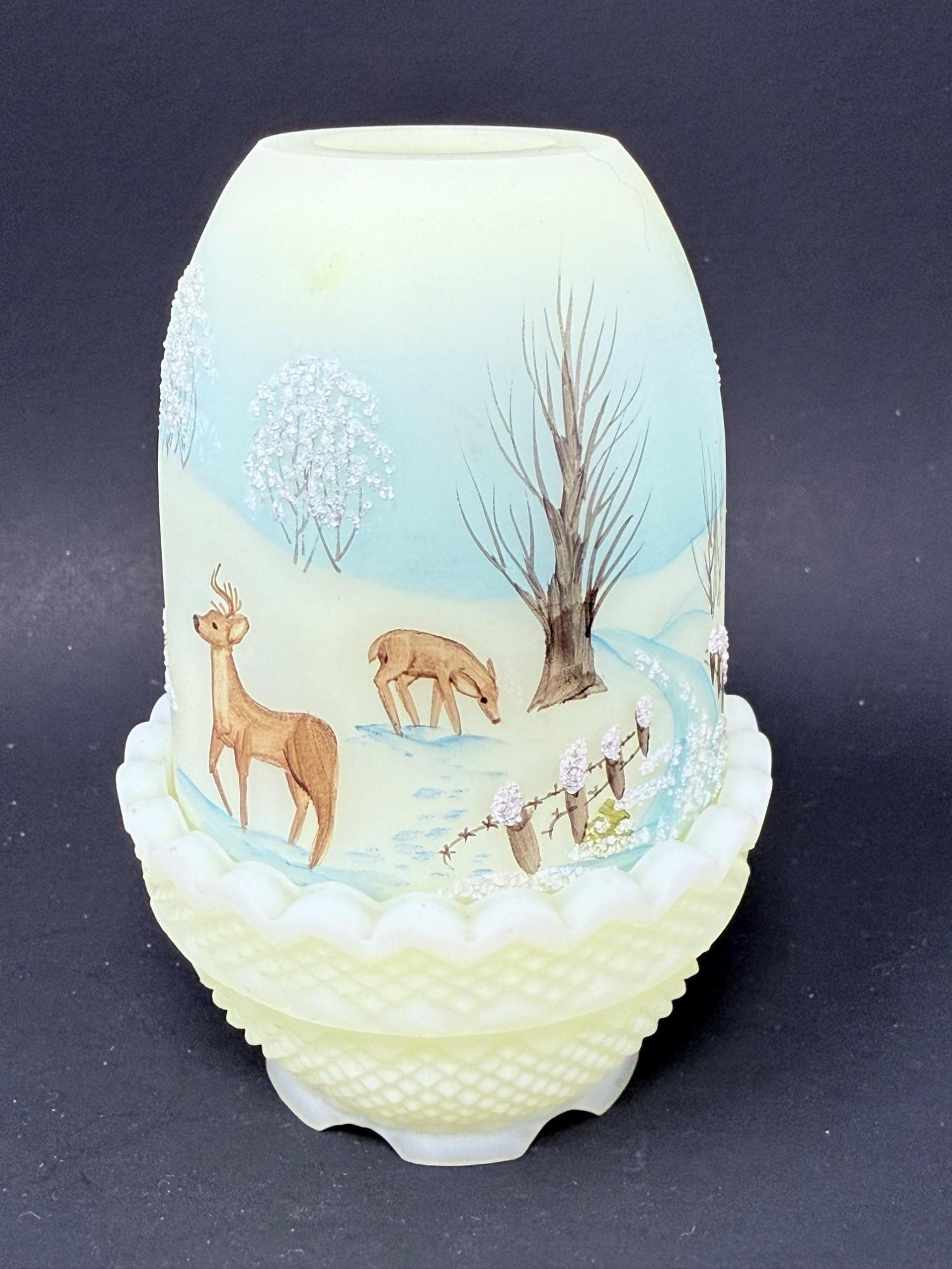 Lot # 137 - Signed Fenton Hand Painted Uranium Glass Fairy Lamp – by Jim Andrik