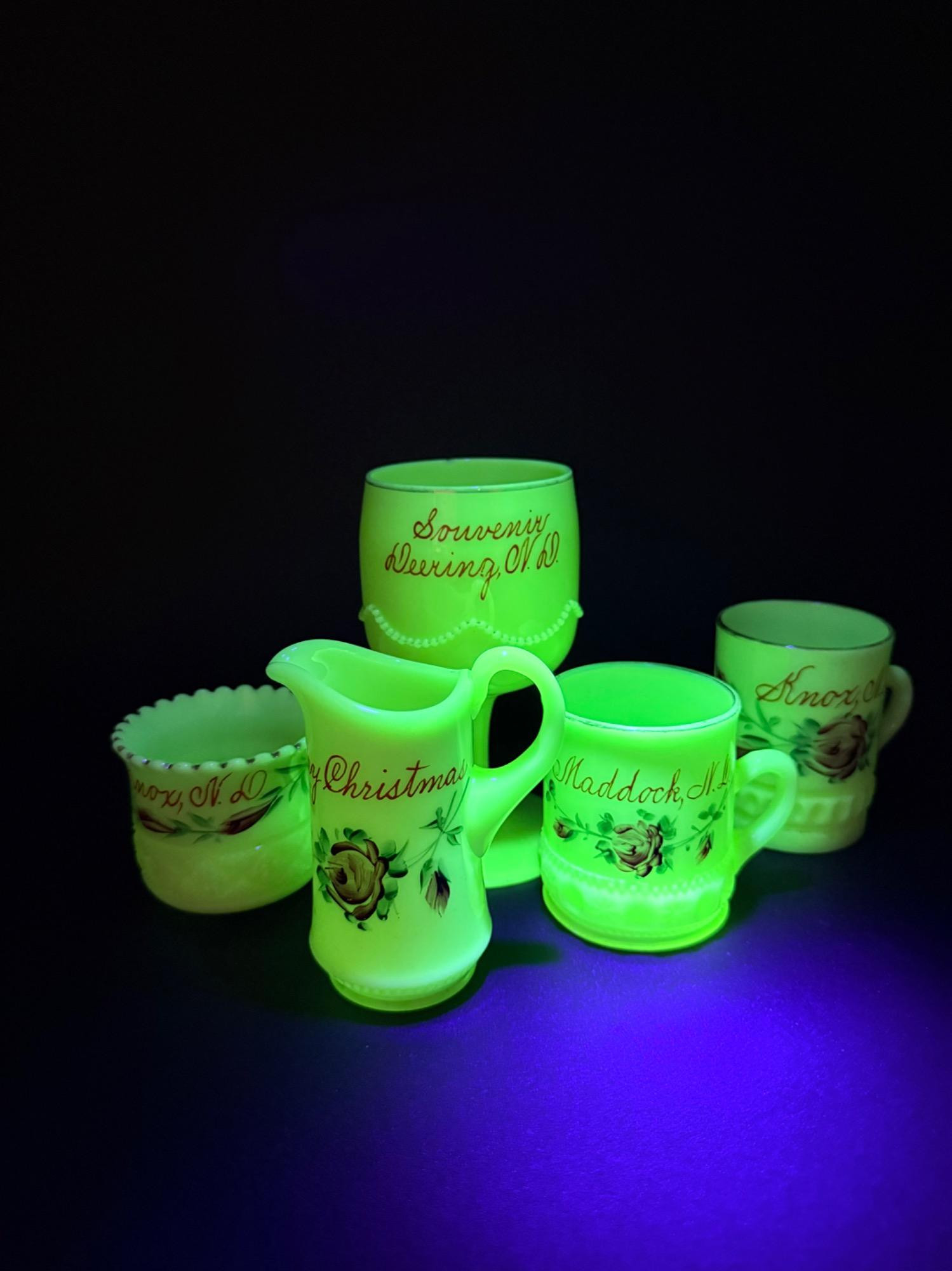 Lot # 176 - Set of 5 Antique Uranium Glass Souvenirs – Glows UV