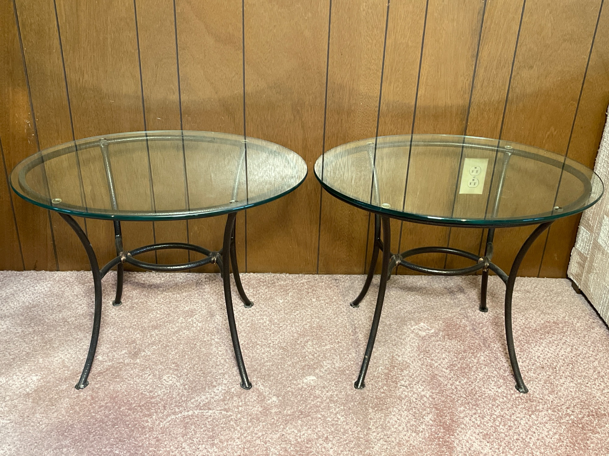 Lot # 160 - Pair of Round Glass and Metal Side Tables