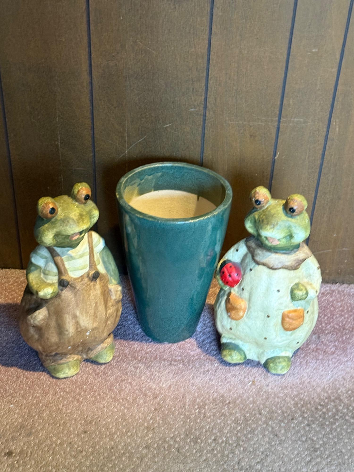 Lot # 192 - Frog Figurines and Ceramic Vase