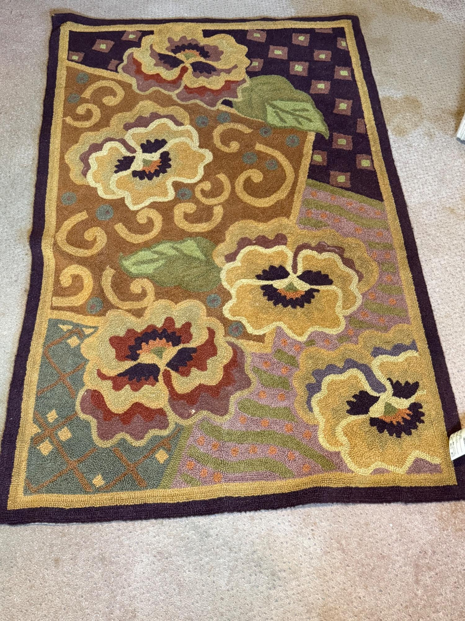 Lot # 106 - Hooked Floral Rug – Multicolor Pansy Pattern
