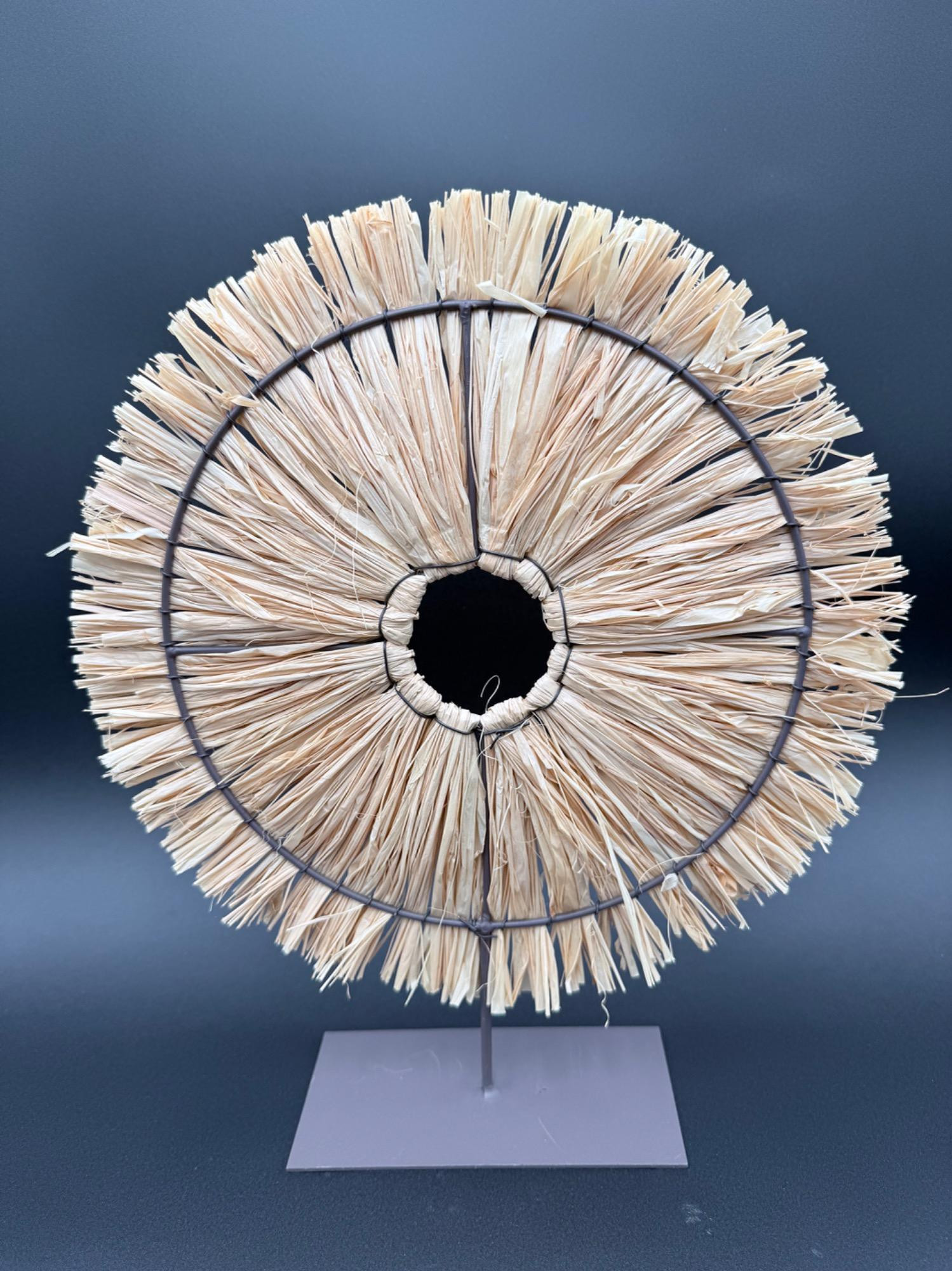 Natural Straw Sculpture On Metal Stand 14.5 T x 12 Diameter