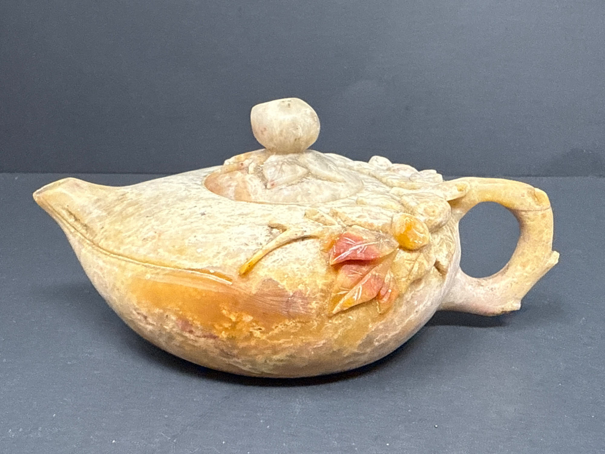 Lot # 55 - Jade Flower Teapot – Hand-Carved Stone Teapot with Floral Motif