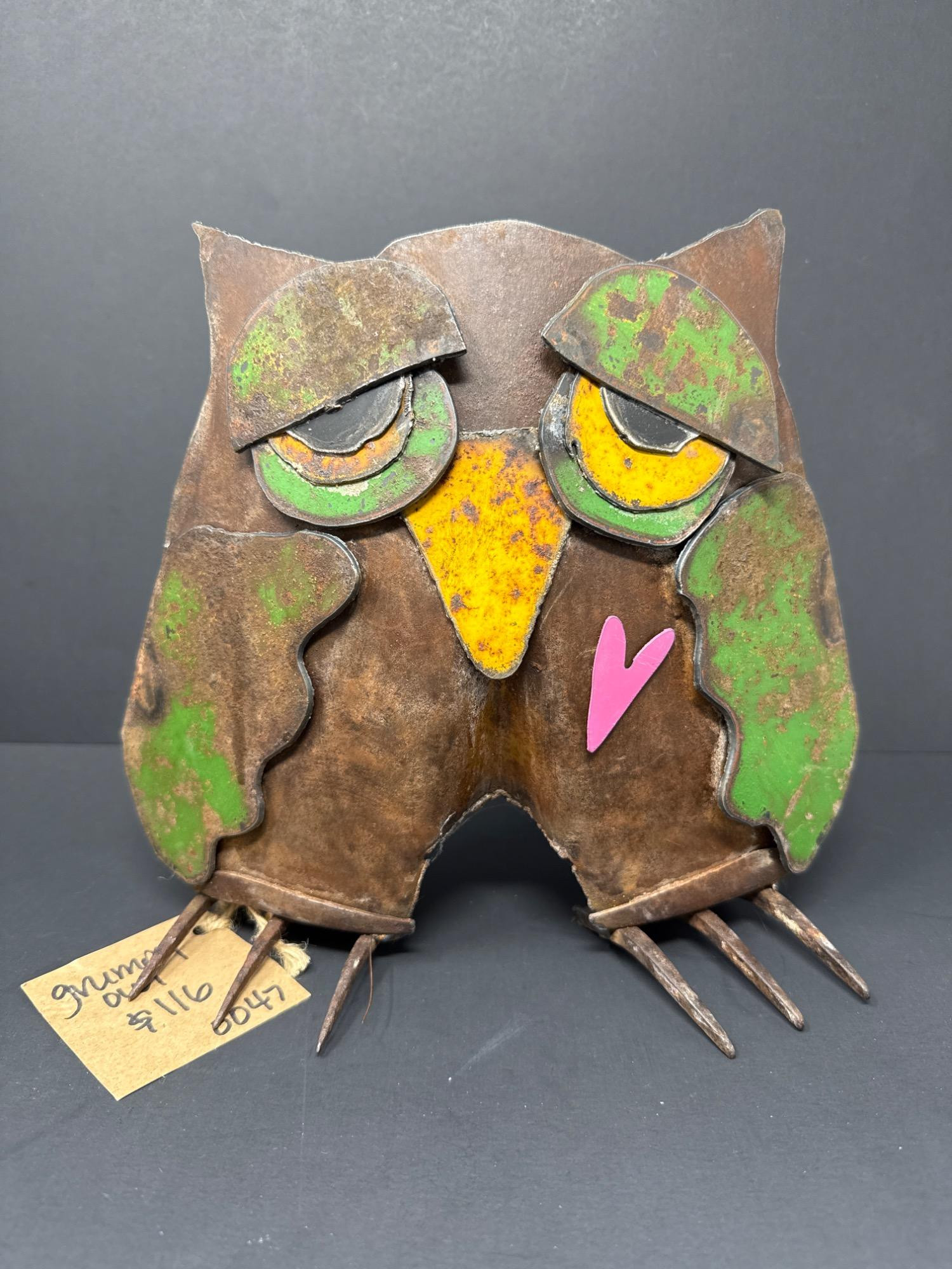 Lot # 65 - Grumpy Owl Metal Art by Brenda Carter – Rustin’ Relics