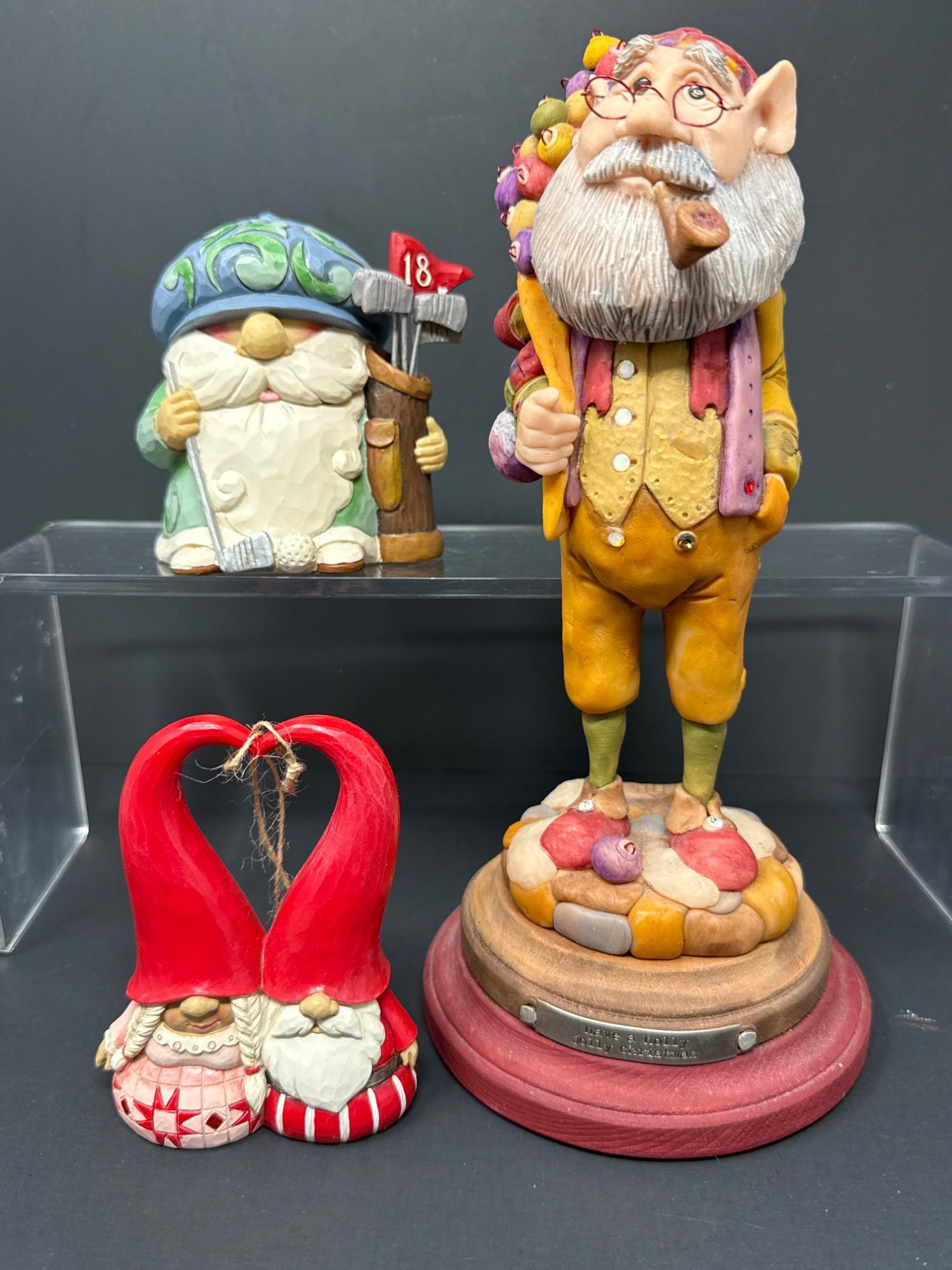 Lot # 86 - Jim Shore Gnomes & Folk Art Santa Figurine Set – 3 Piece Hand-Painted