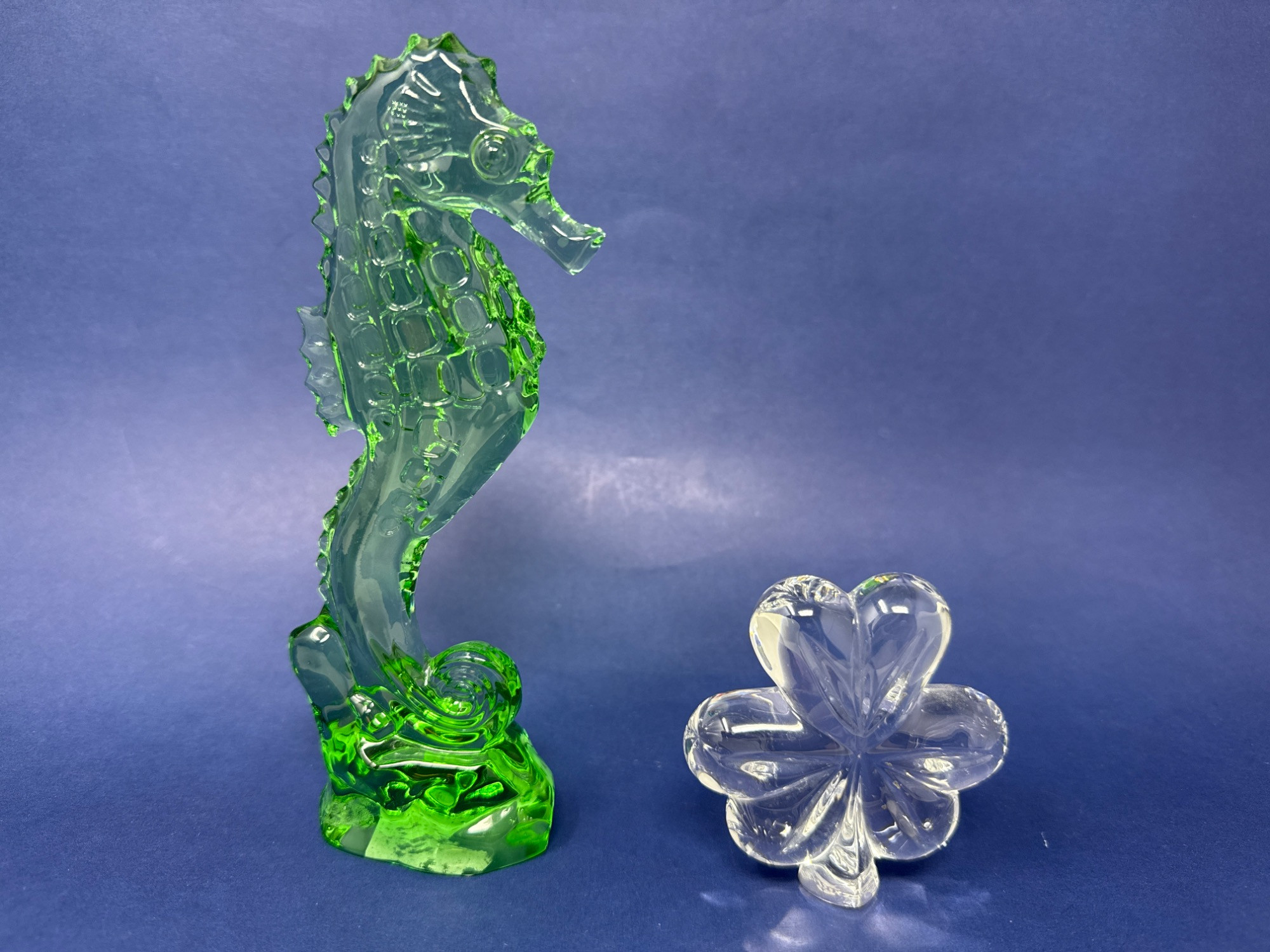 Lot # 89 - Waterford Crystal Clover & Emerald Seahorse Sculpture Set