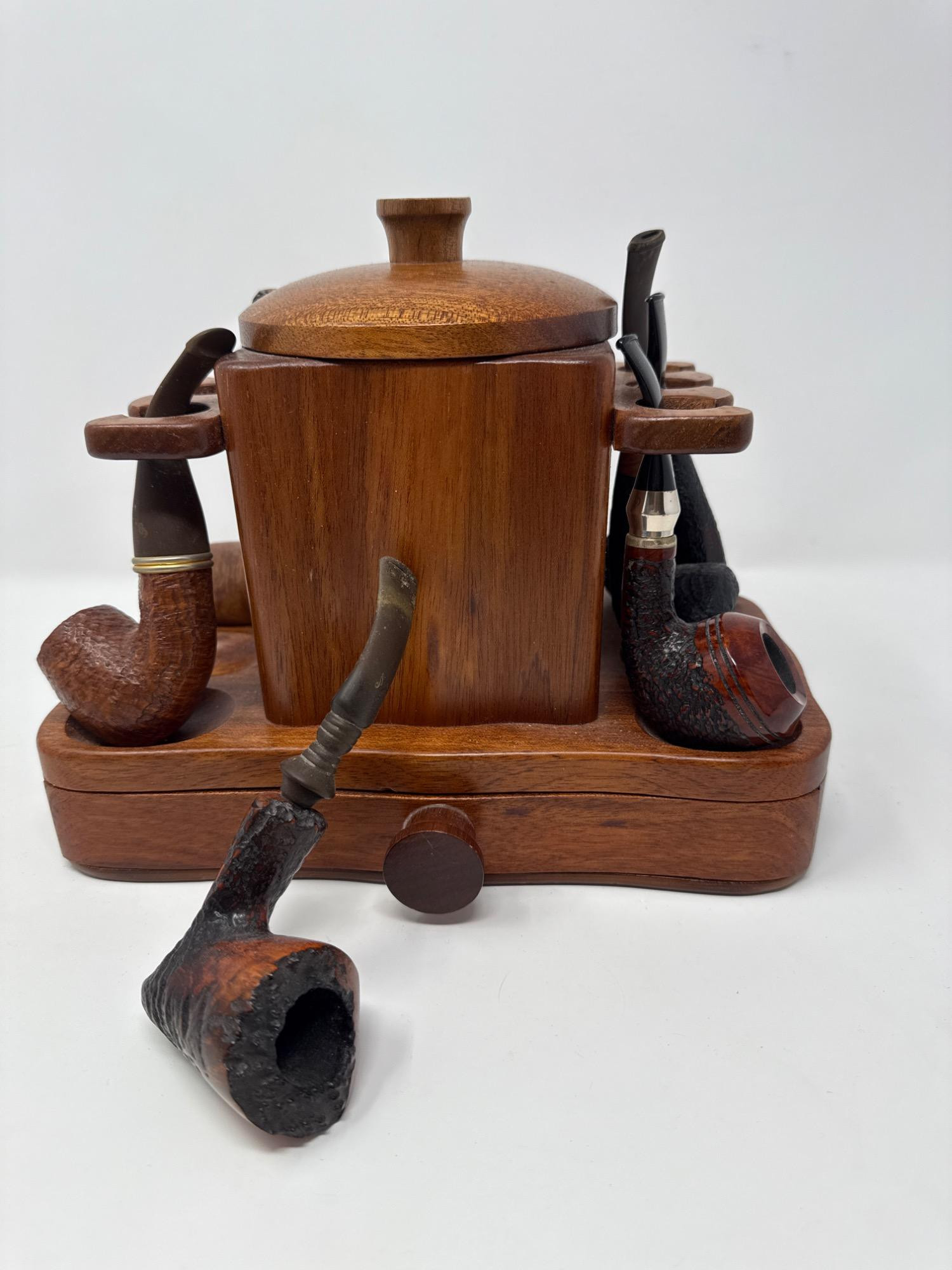 Lot # 9 - Vintage Wooden Pipe Tobacco Humidor with Pipes Rack