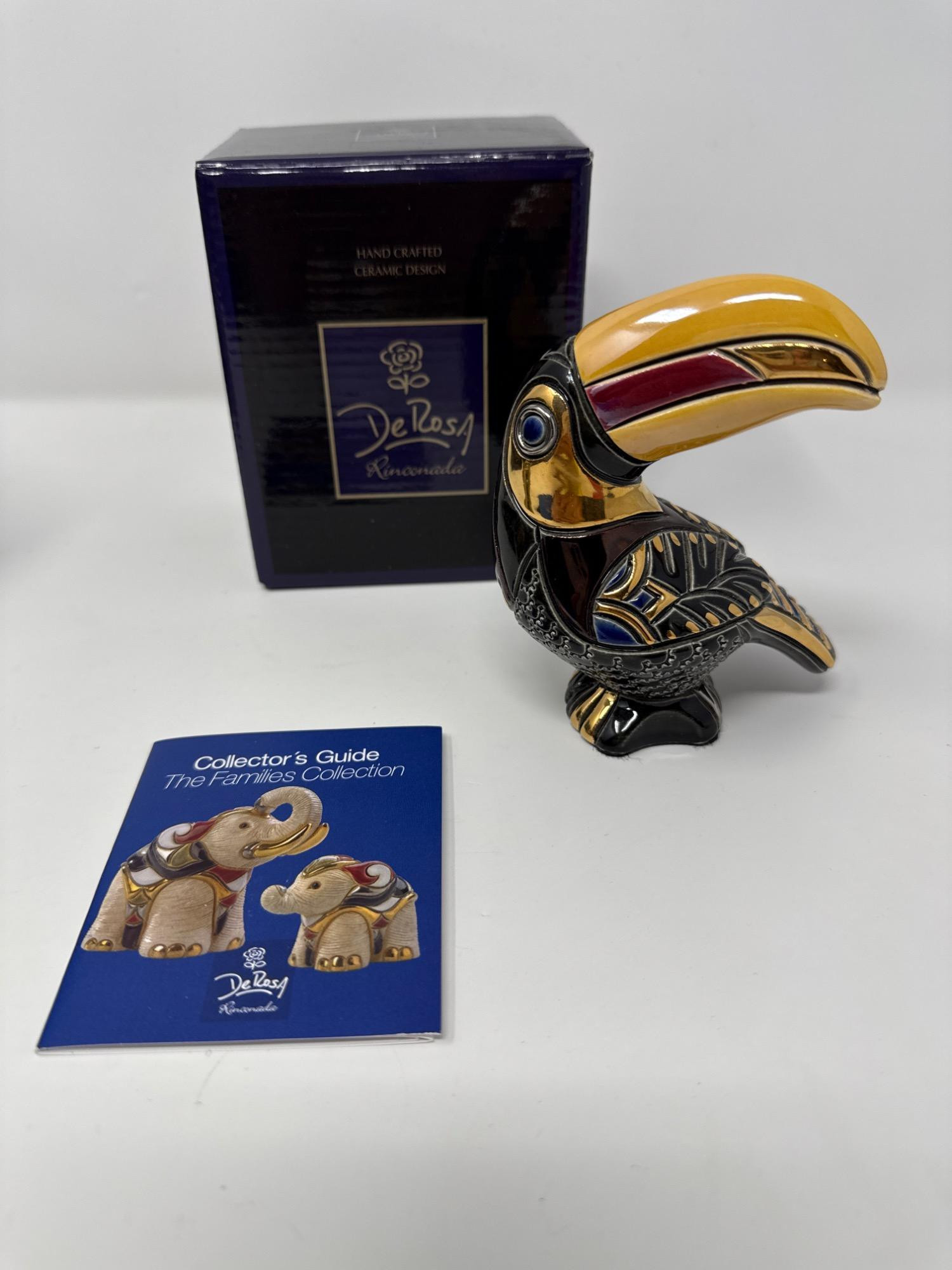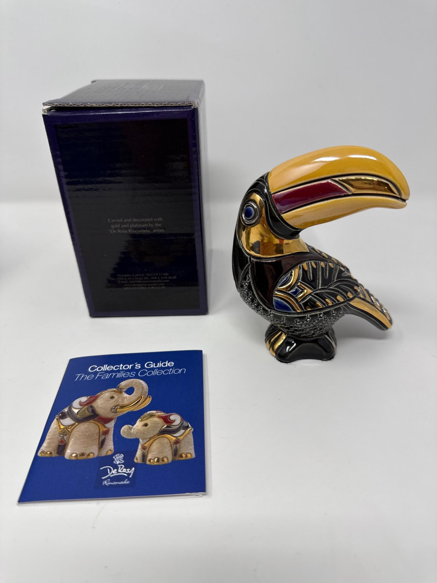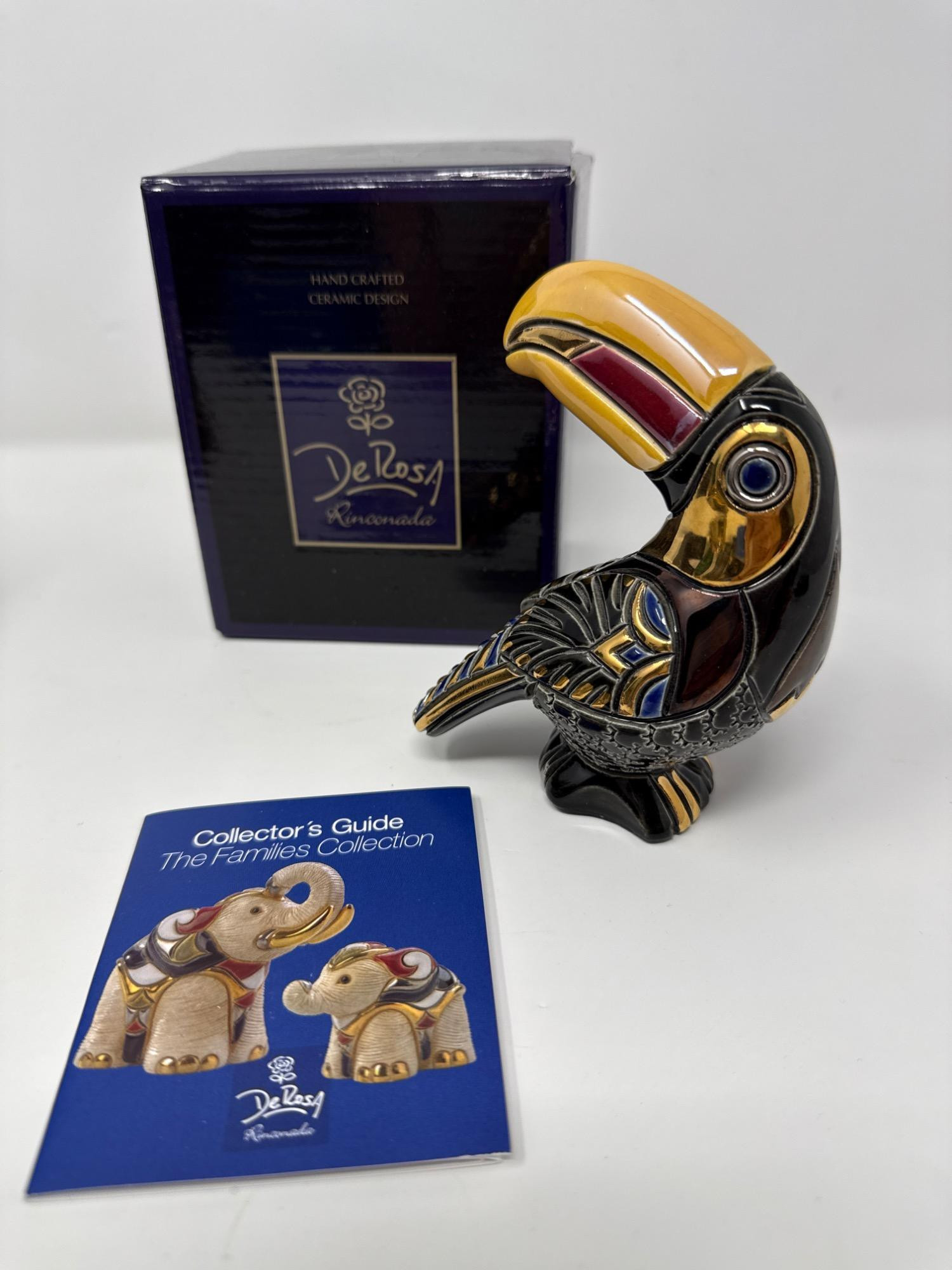 This beautiful DeRosa Rinconada set includes two intricately hand-carved and hand-painted ceramic figurines: a striking pelican and a charming turtle. These collectible pieces come from the acclaimed “Families Collection” and are crafted with rich details, vibrant glazes, and metallic accents, showcasing the renowned artistry of DeRosa. Set Includes: 1 Handcrafted Pelican Figurine (Item F76) 1 Handcrafted Land Turtle Figurine (Item F108) 2 Original DeRosa Presentation Boxes 1 Collector’s Guide Booklet – The Families Collection