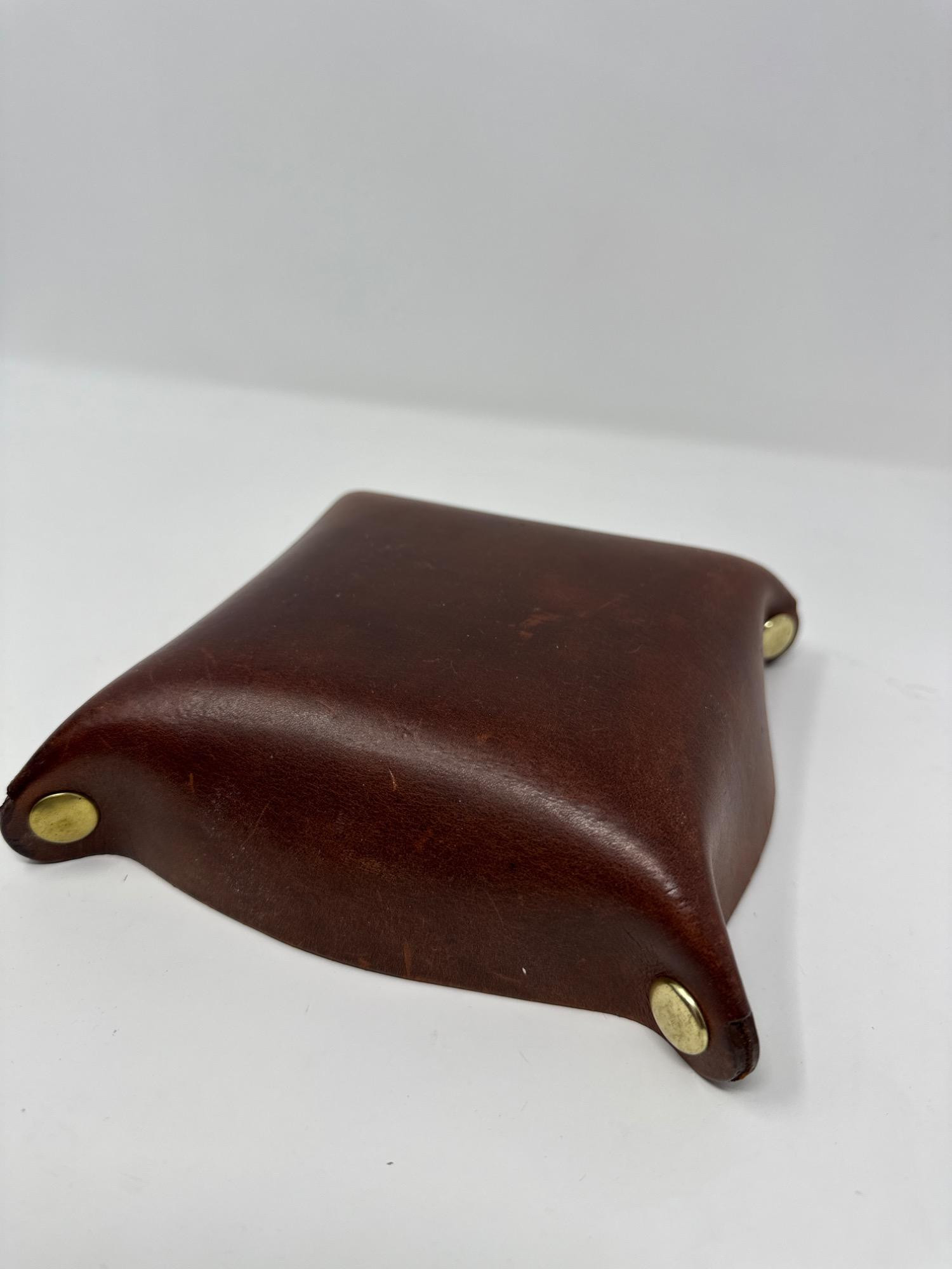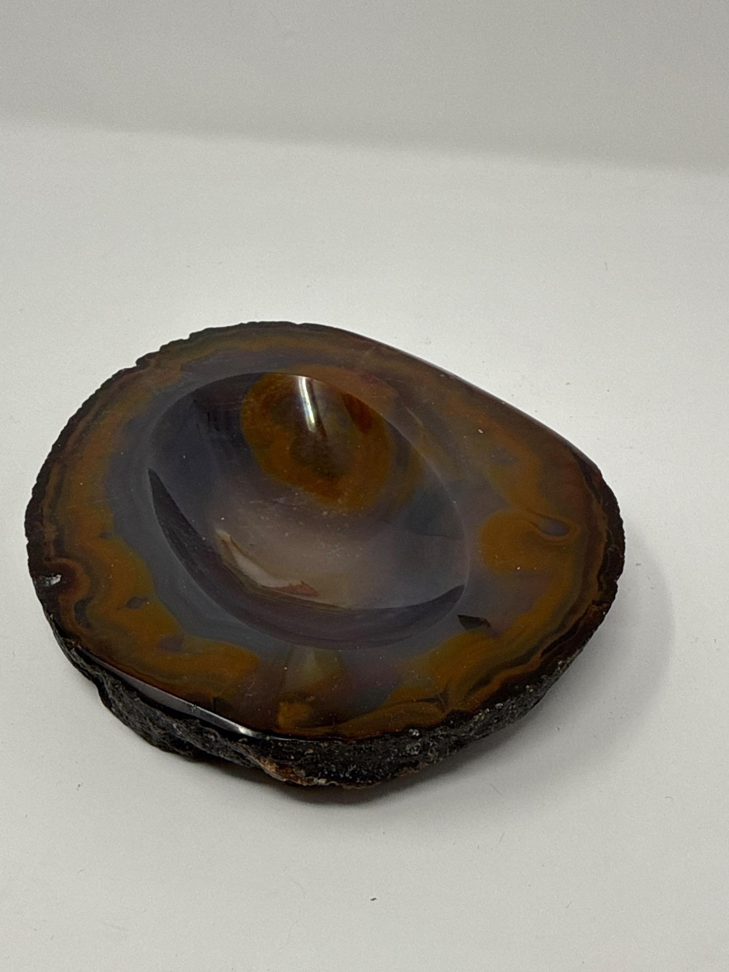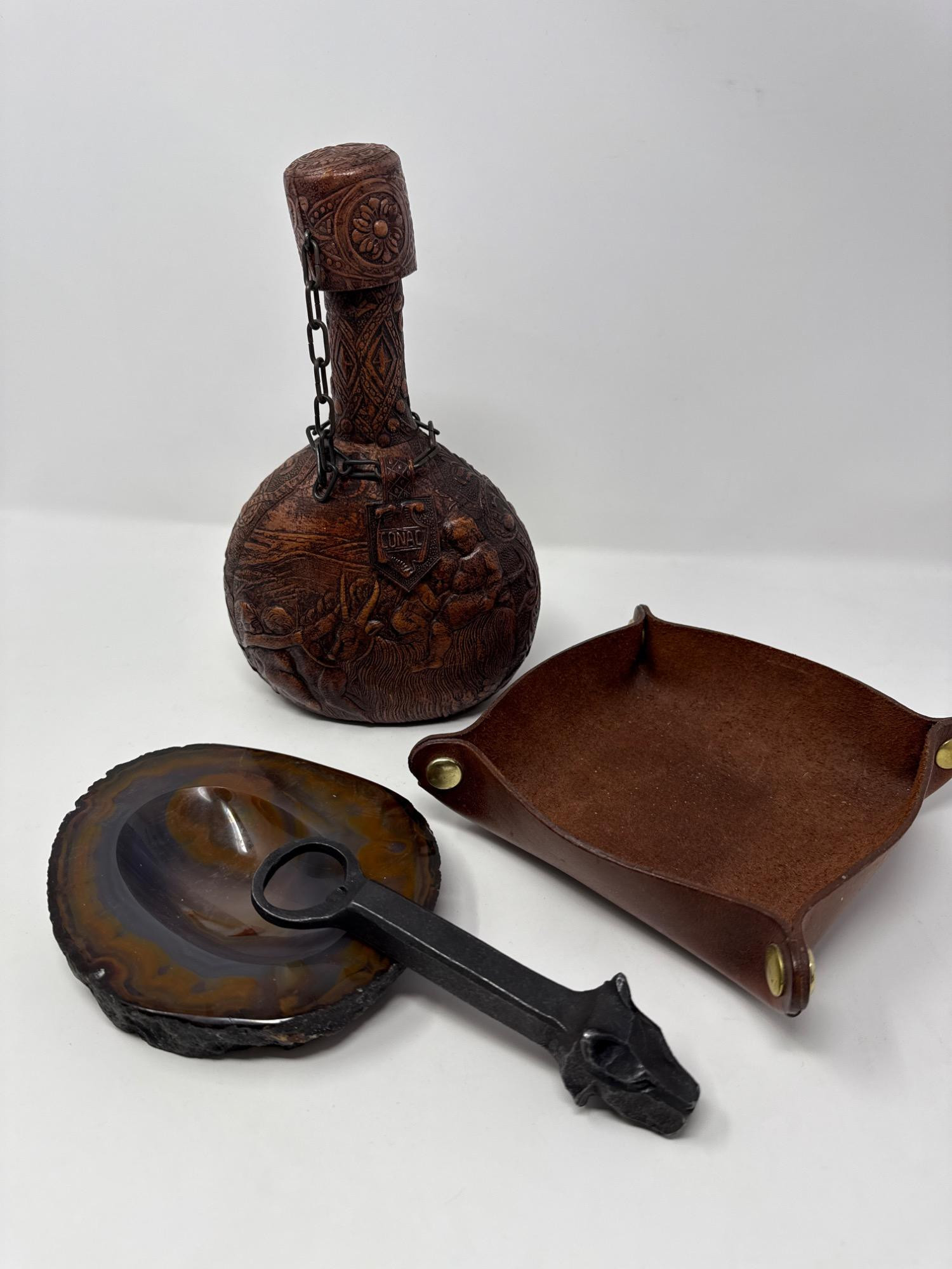Lot # 16 - Vintage Leather Whisky Bottle, Valet Tray & Agate Trinket Bowl