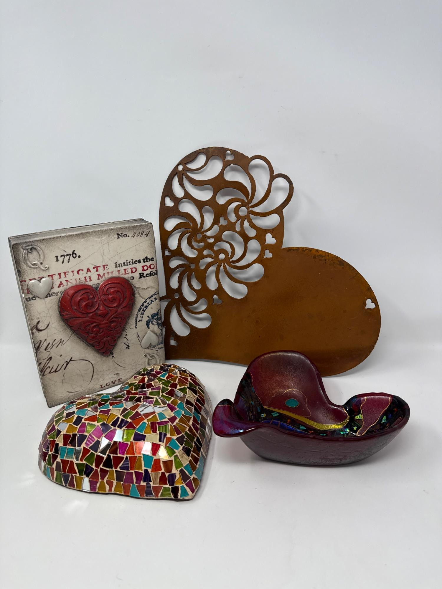 Lot # 18 - Signed Heart Decor Collection – Mixed Media Wall & Bowl Art