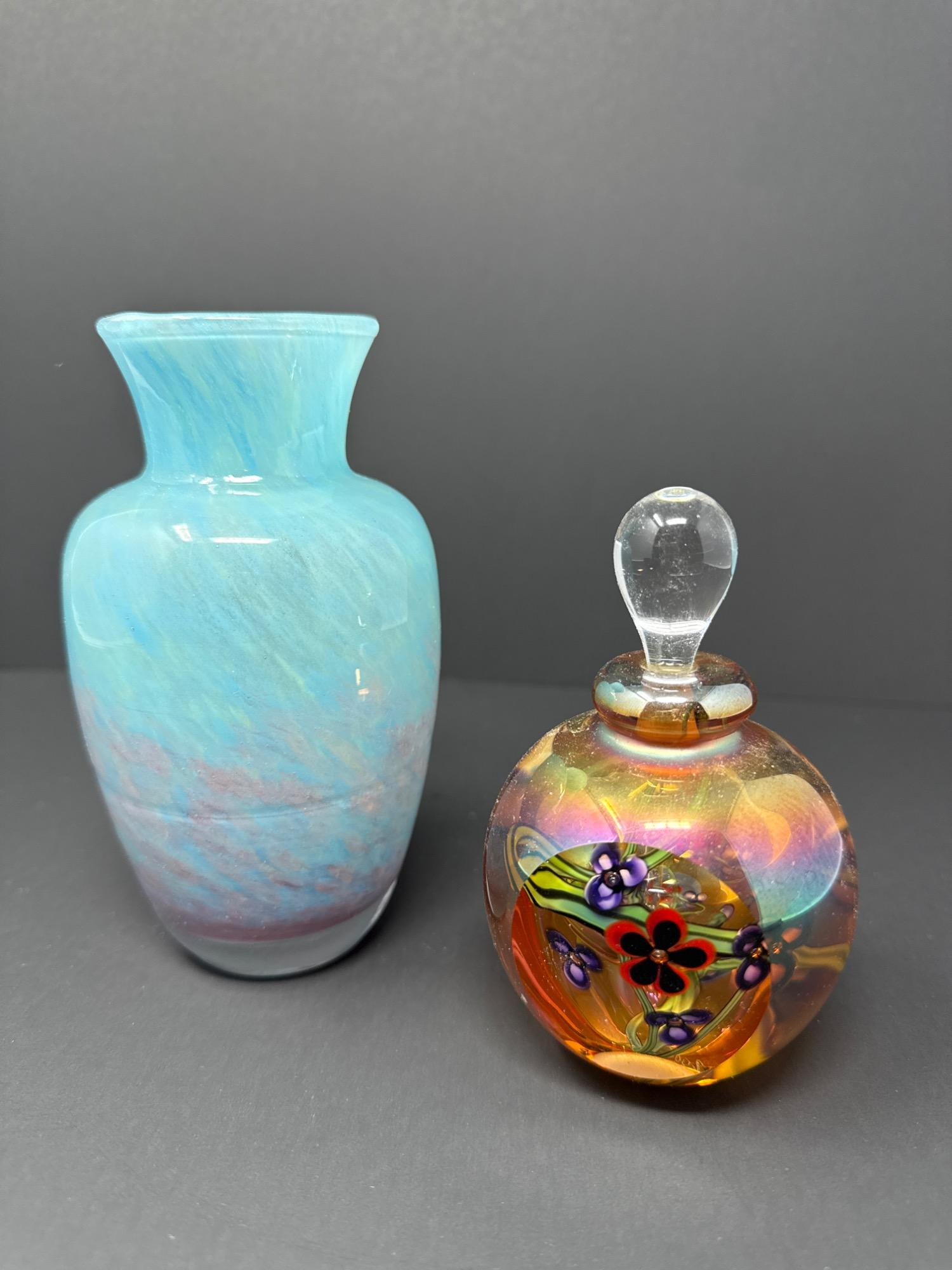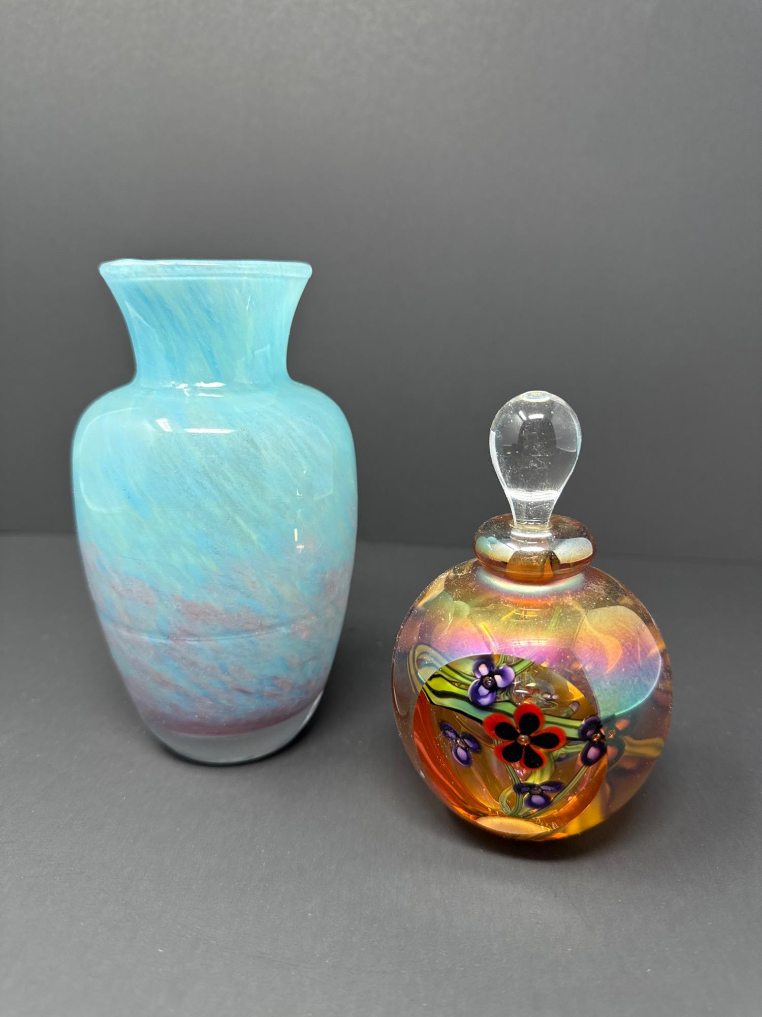 Lot # 41 - Small Italian Art Glass Vase from Gump’s & Signed Perfume Bottle