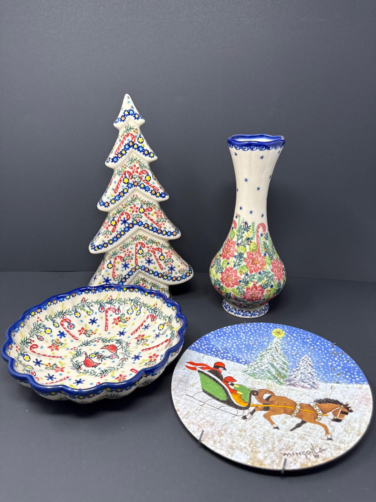 Lot # 44 - Holiday Decor Set – Polish Pottery and Mingolla Plate