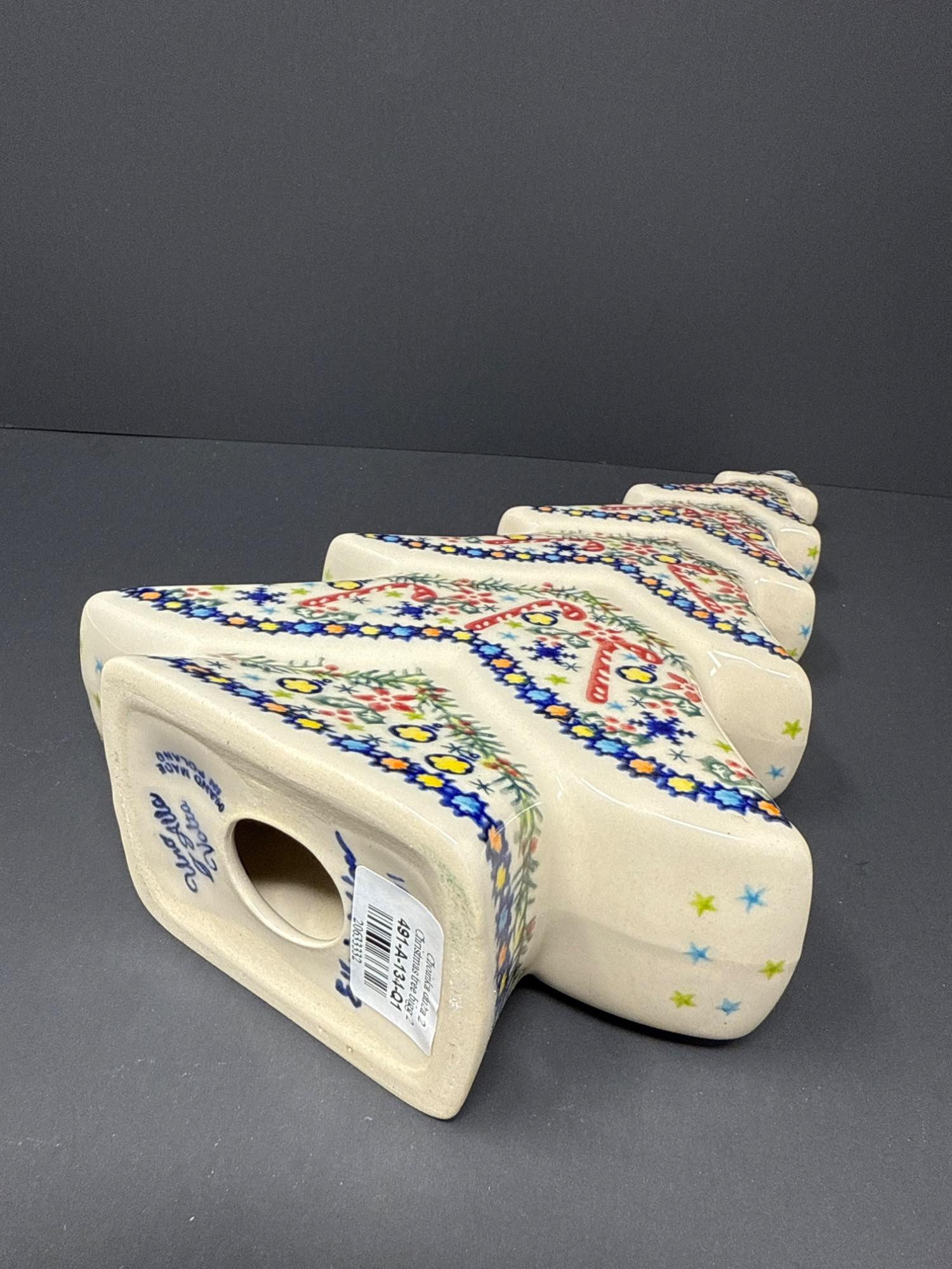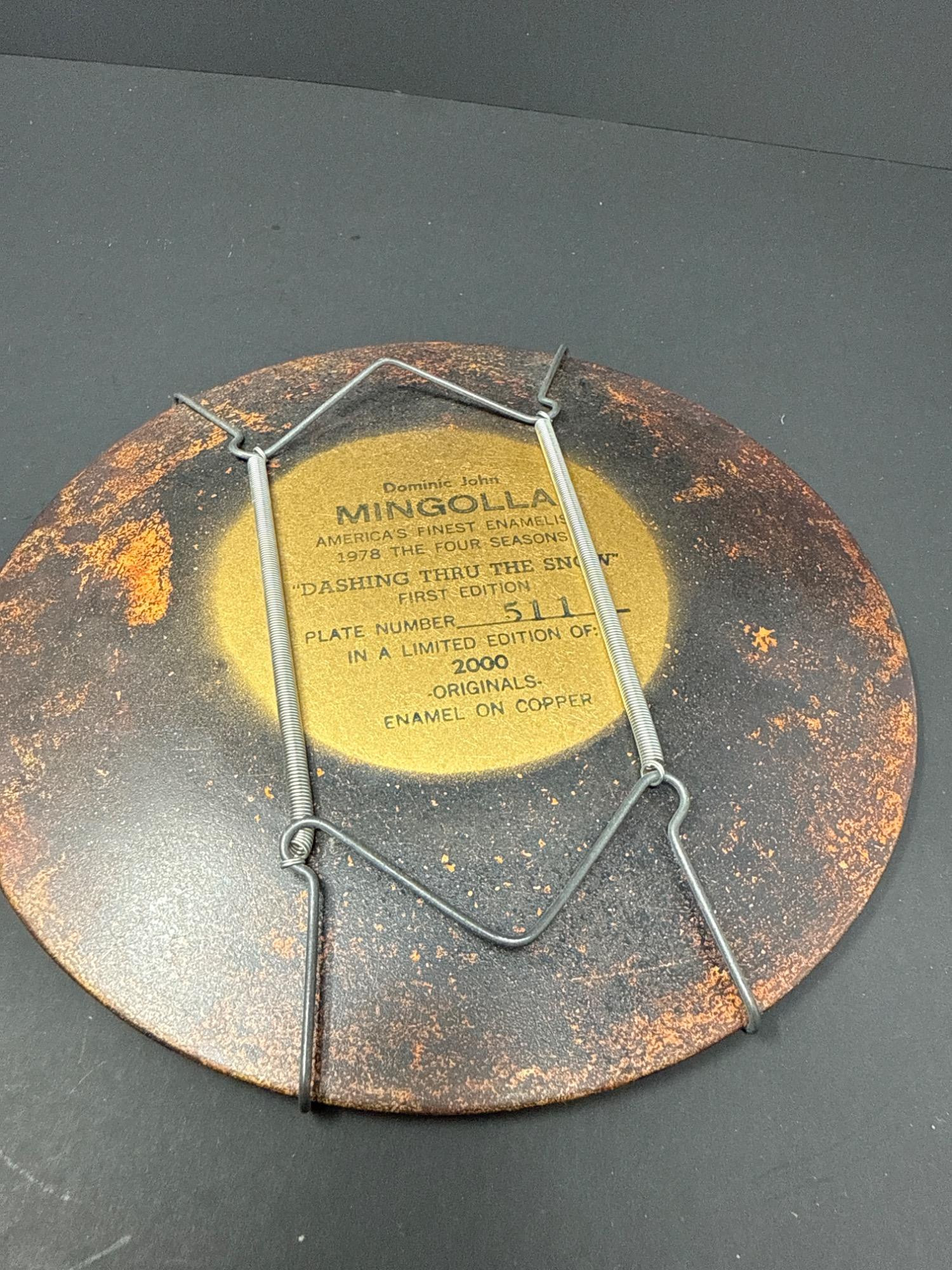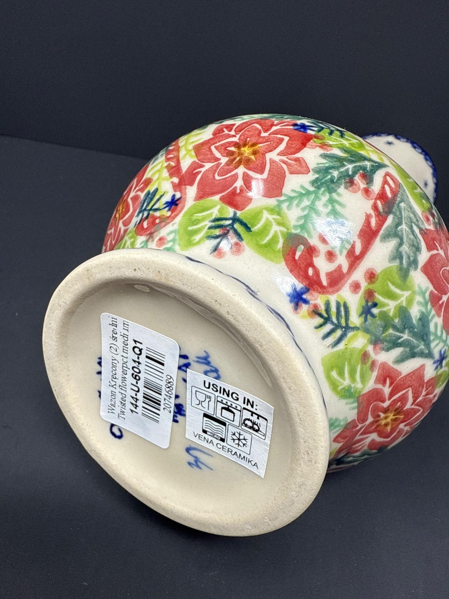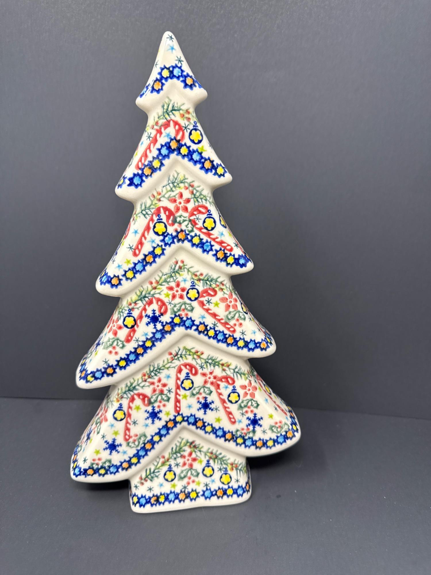 Celebrate the season with this beautifully curated 4-piece holiday decor set, featuring hand-painted Polish pottery and a limited edition enamel plate by American artist Dominic John Mingolla. Each item is bursting with festive charm, artistic detail, and collectible appeal. SET INCLUDES: Polish Pottery Christmas Tree Figurine – "Choinka duża 2" Size: 12" tall x 6" wide Handmade in Poland Decorated with classic holiday motifs: candy canes, snowflakes, ornaments, and stars Stamped “Hand Made in Poland” on the base Artist signature and production mark present Vena Ceramika Floral Holiday Vase Size: 10" tall x 4" wide Features festive poinsettias, candy canes, evergreens, and star accents Stamped “Vena Ceramika, Poland” Scalloped Bowl – Polish Pottery by Uno Alla Volta Size: 8" diameter x 2" tall Features a central red cardinal pair surrounded by candy canes, florals, and holiday motifs Scalloped edge with rich cobalt blue trim Stamped: “Handcrafted exclusively for Uno Alla Volta in Poland” Pattern: AT 559 – Signed with artist Enamel Collector Plate – “Dashing Thru the Snow” Size: 8" diameter By enamel artist Dominic John Mingolla Part of the 1978 “Four Seasons” series Signed "Mingolla" on the front Includes original metal hanger for wall display