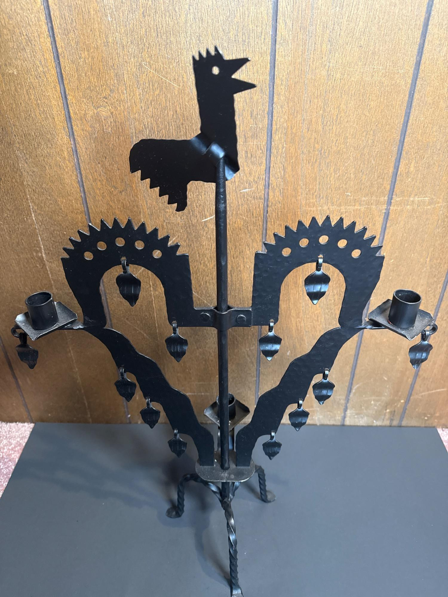 Lot # 75 - Forged Rooster Post Candlestick 3 feet Tall