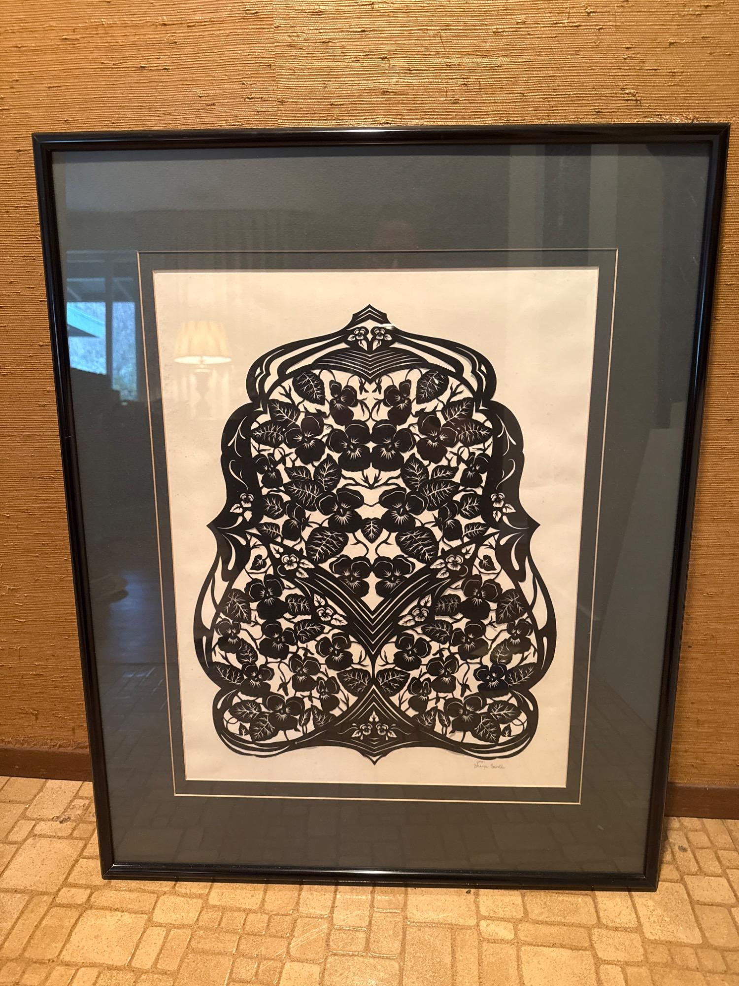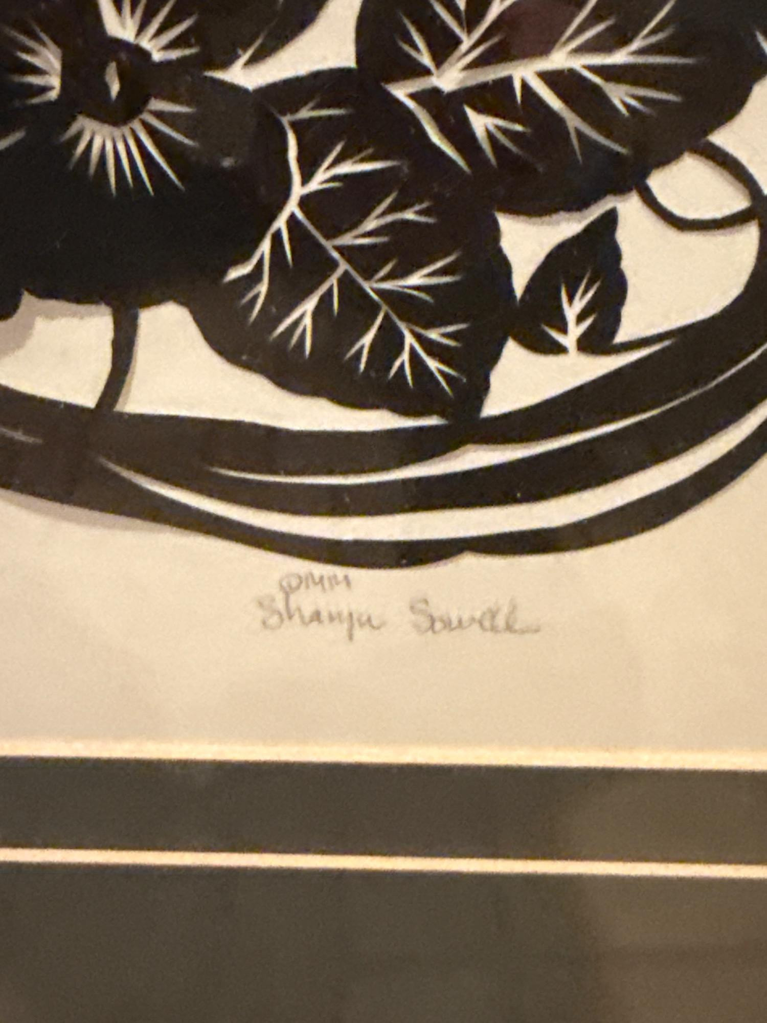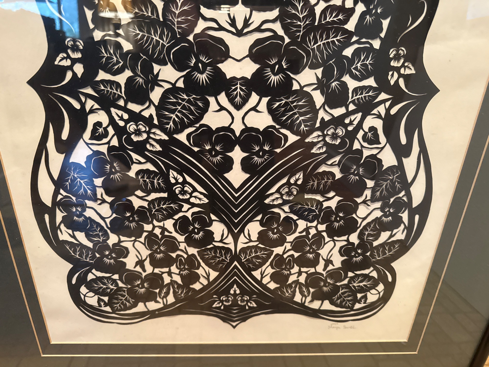 Lot # 83 - Sharyn Sowell Original Scissor Art – Framed Papercut Floral Design