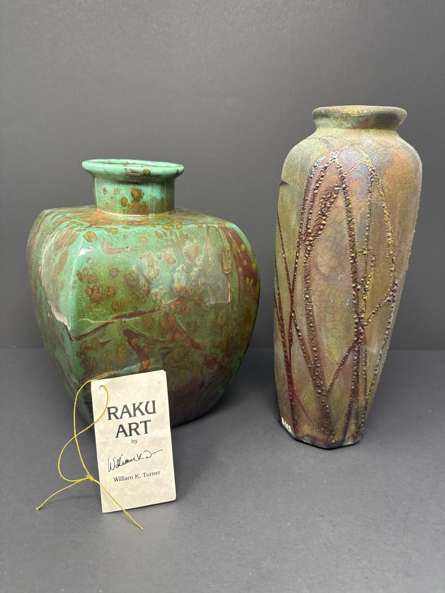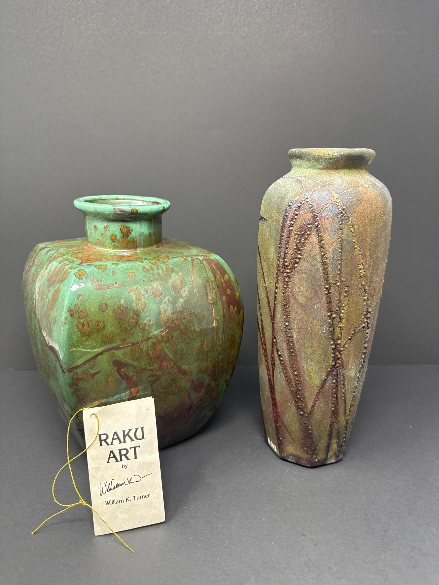 Lot # 84 - Pair of Signed Raku Art Vases by William K. Turner – Studio Pottery
