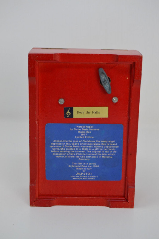 Limited edition music box from Italy that plays “Deck the Halls.” Based on unpublished works of Sister Hummel and part of the ANRI “Heavenly Lullabies” collection.