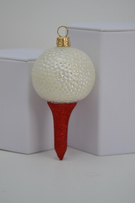 Features a textured white globe top and glittered red cone base—adds a sparkling accent to any tree.
