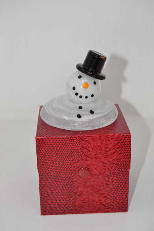 Celebrate the holiday season with this charming Christmas collection featuring a mix of decorative and collectible pieces: Includes: (2) Neiman Marcus Nutcracker Candles – Intricately detailed, colorful nutcracker designs, comes with original box Christian Ulbricht Snowman Incense Smoker/Burner – Handmade in Germany, includes broom, scarf, and pipe accessories Prestige Art Glass Melting Snowman Paperweight – Unique swirled glass design with a top hat, includes original red box Kentucky Crafted Nativity Ornament – Hand-carved wood ornament with nativity scene, boxed with tag (5) Mini Christmas Books – Titles include The Twelve Days of Christmas, The Christmas Candle Book, The Christmas Thimble Book, and more Dimensions: