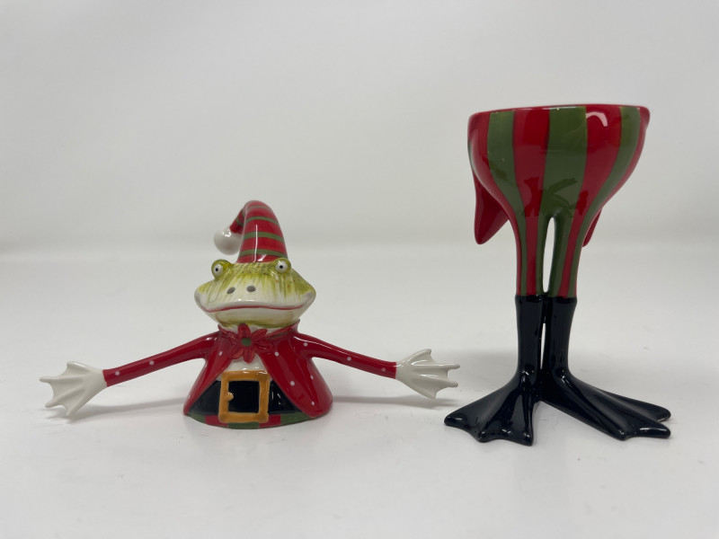 Lot # 159 - Department 56 Christmas Krinkles Santa Frog Salt and Pepper Shaker