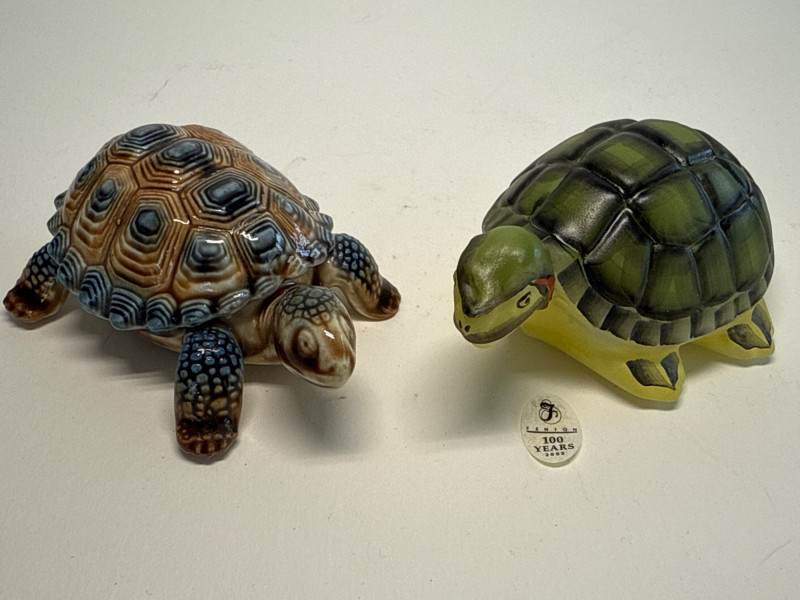 Lot # 64 - Fenton 100-Year Commemorative Glass Turtle & Wade Ceramic Turtle Box