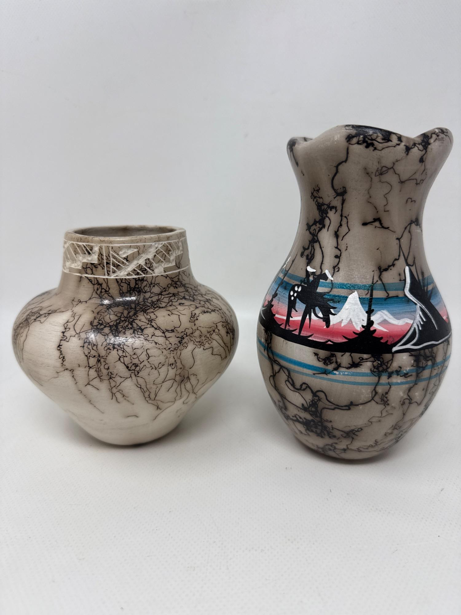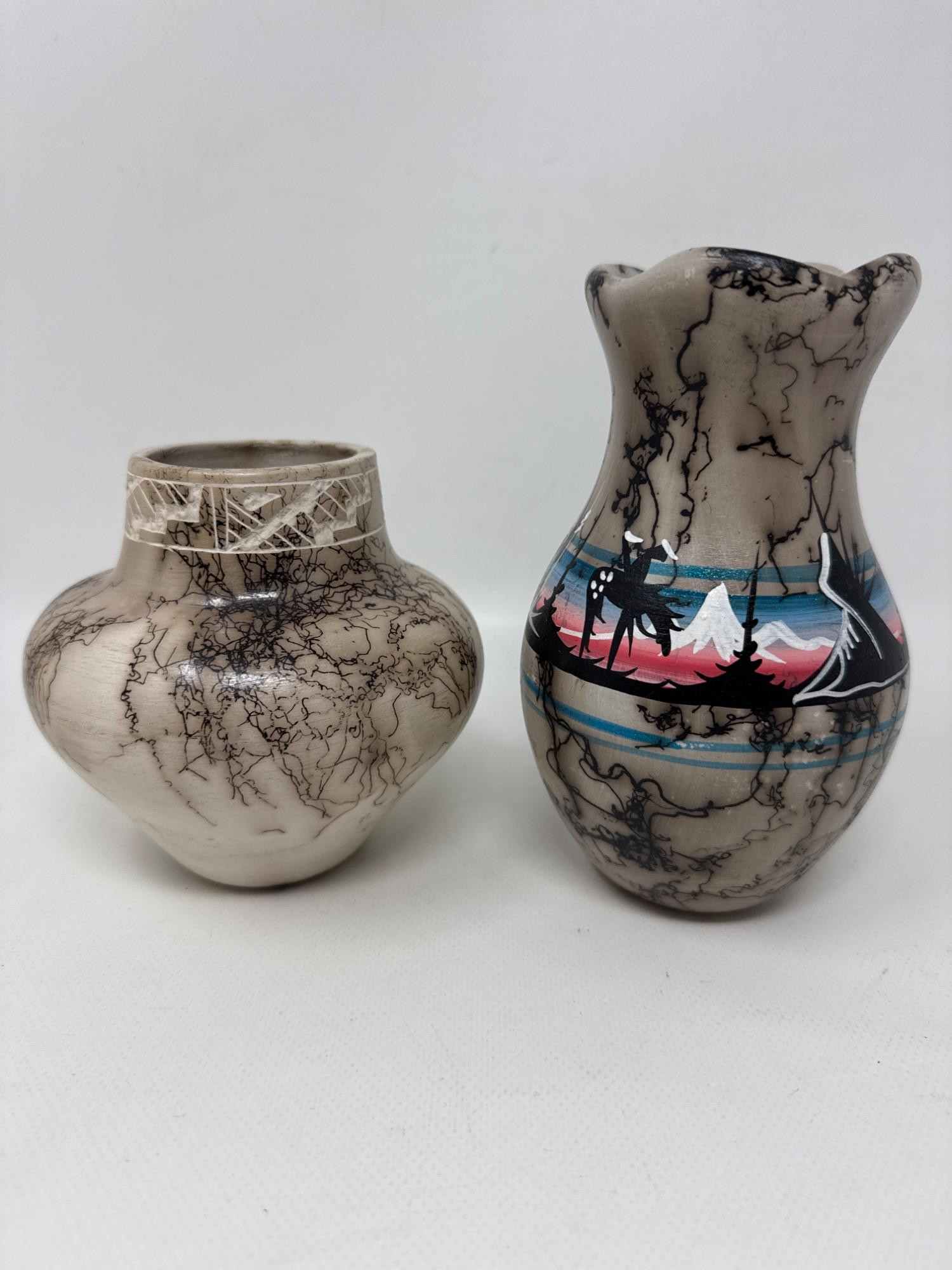 Lot # 108 - Signed Navajo-Style Horsehair Pottery Vases – Vail SR & Diné EHB