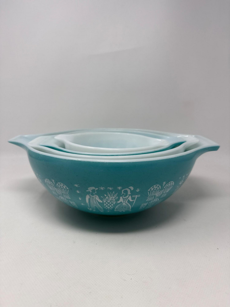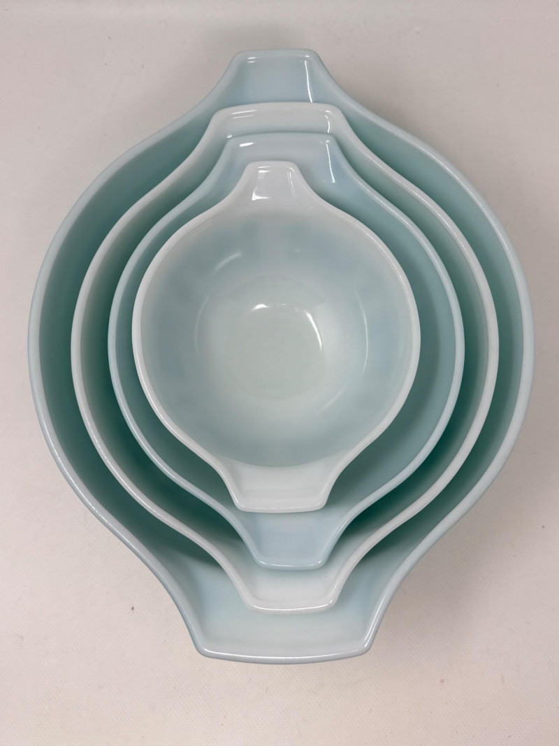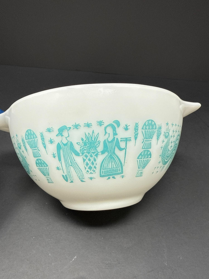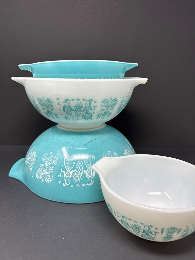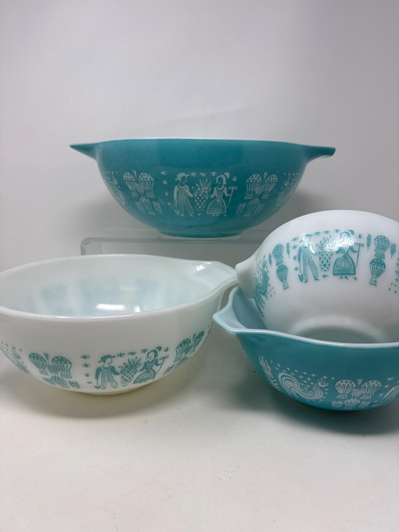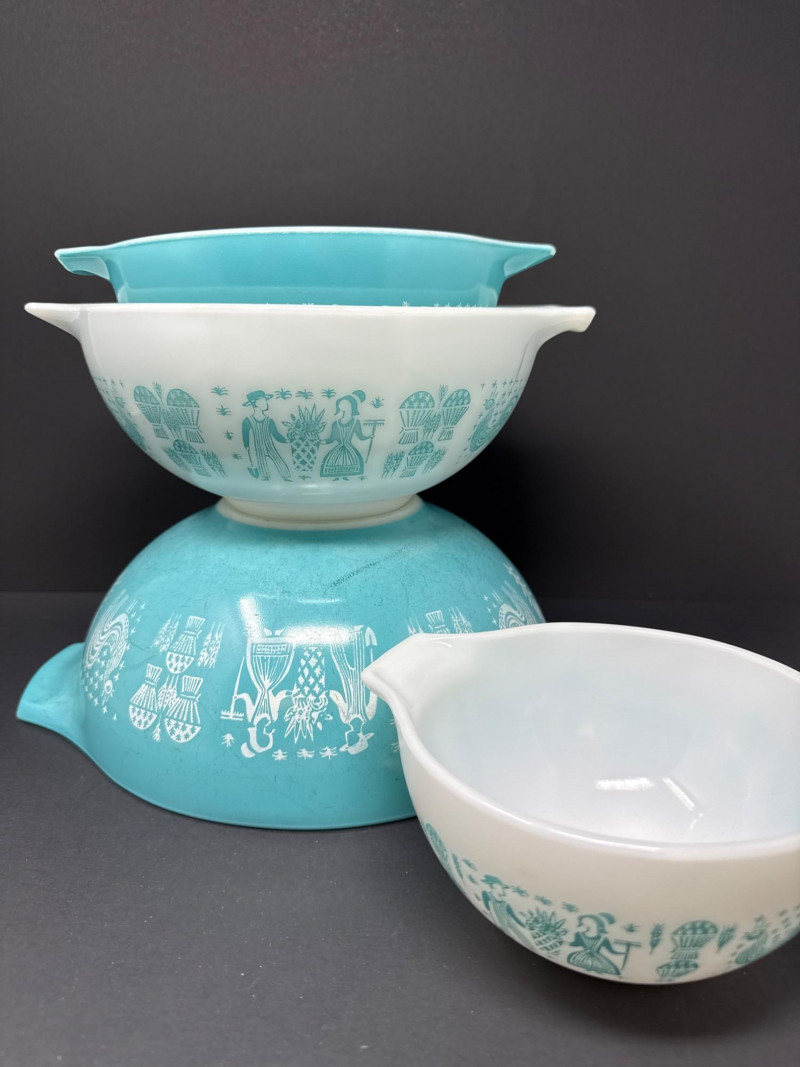 Lot # 165 - Vintage Teal and White Pyrex Nesting Mixing Bowls – Amish Butterprint