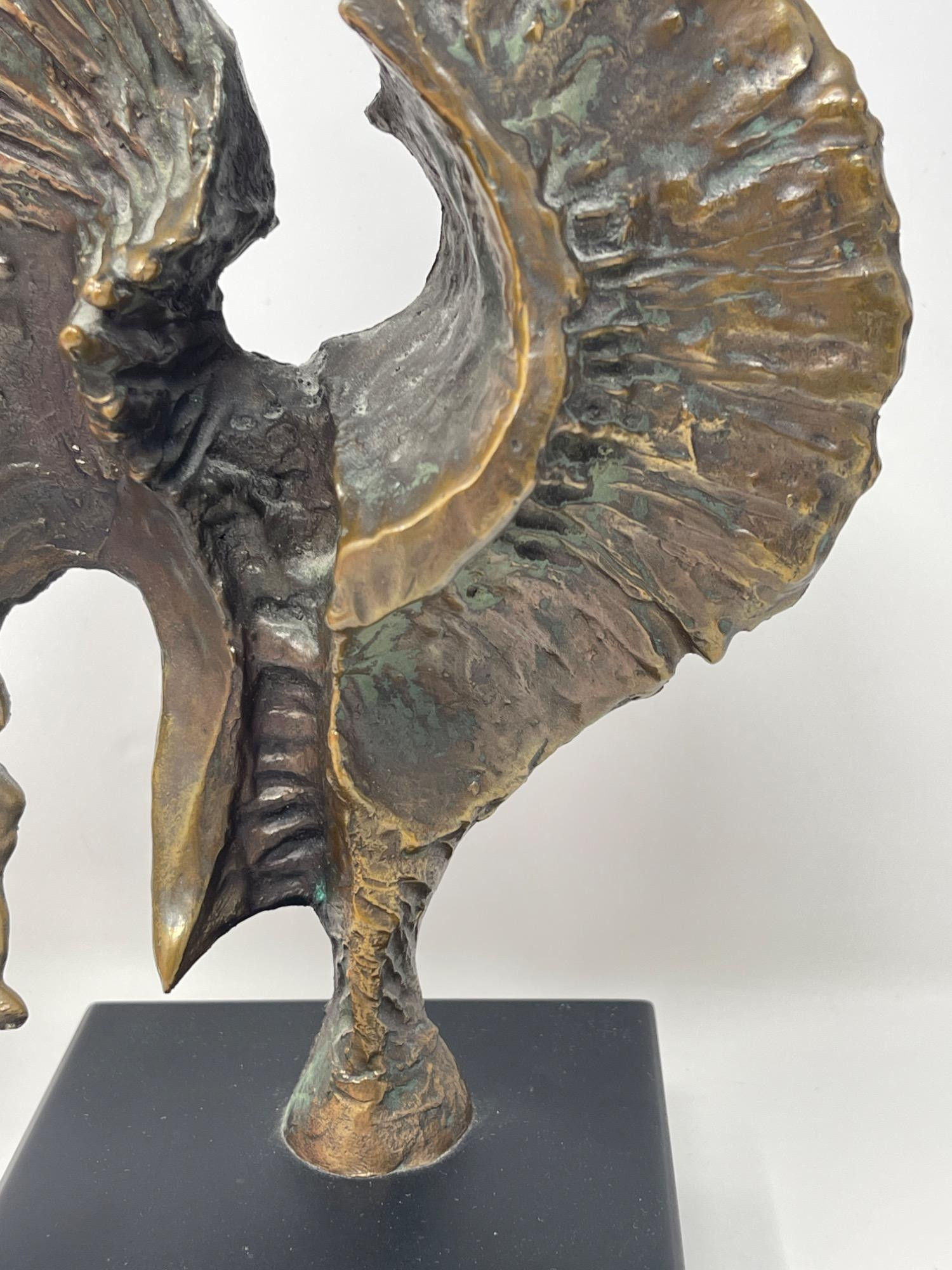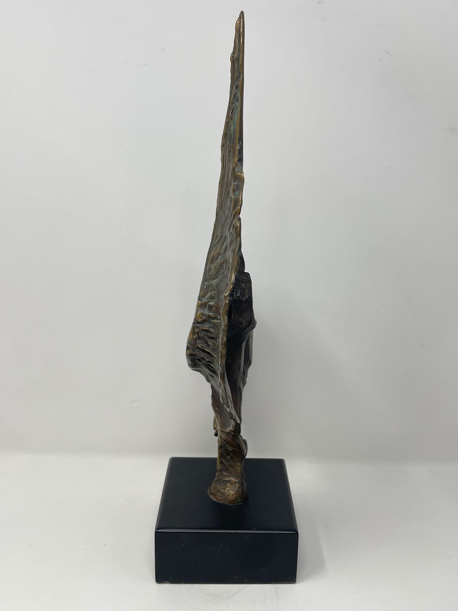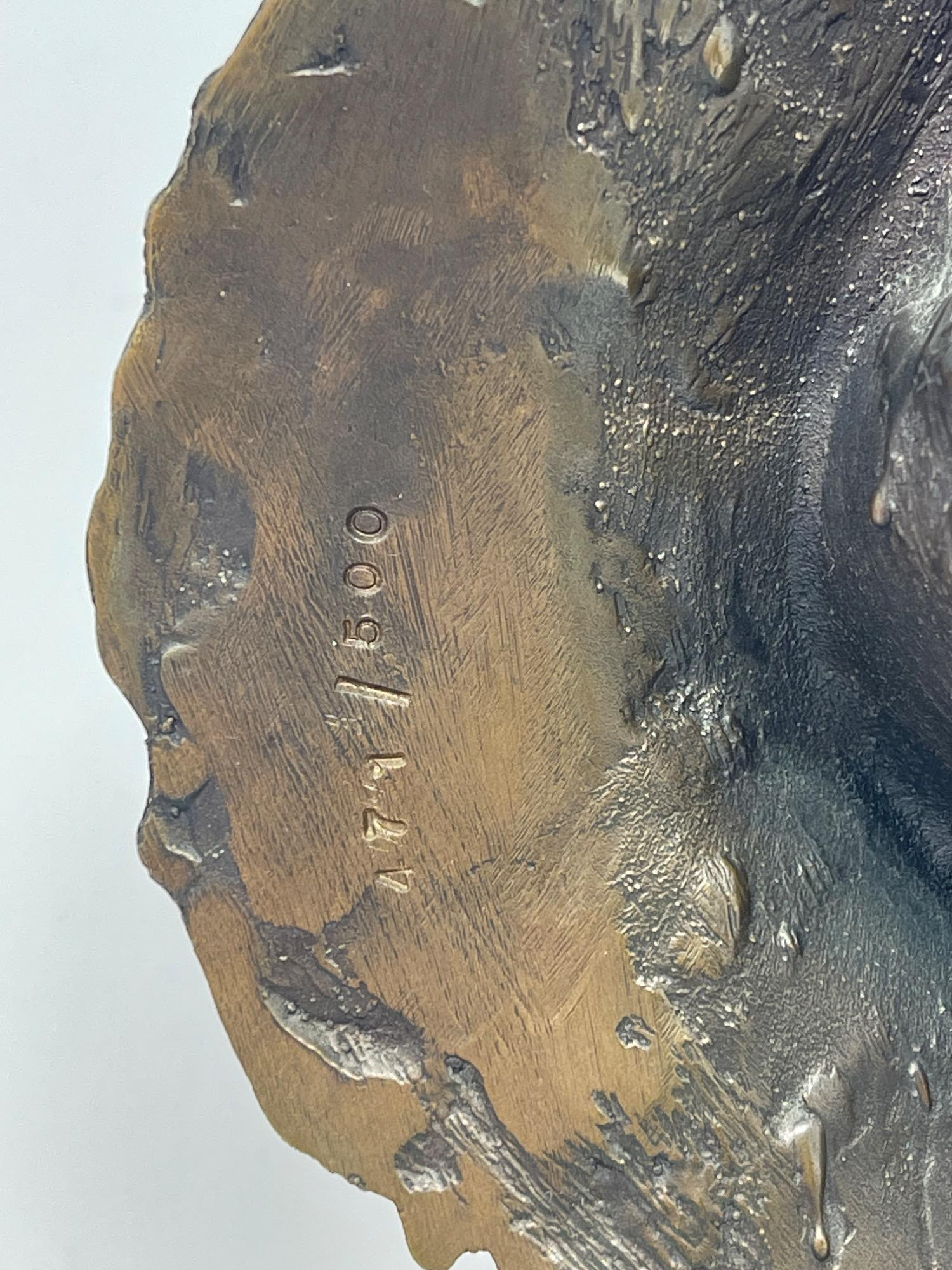 Mid Century Franco Russo Sunburst Bronze Sculpture 471/800 Capture the essence of mid-century abstract art with this limited edition 'Starburst' bronze sculpture by Italian artist Franco Russo. This piece is number 471 out of 800, standing 12½ inches tall and cast in the traditional lost-wax method. It features an elegant design inspired by natural forms, with a rich bronze patina that highlights its dynamic textures. Mounted on a matte-finish black base, it makes a striking addition to any collection. Artist Background: