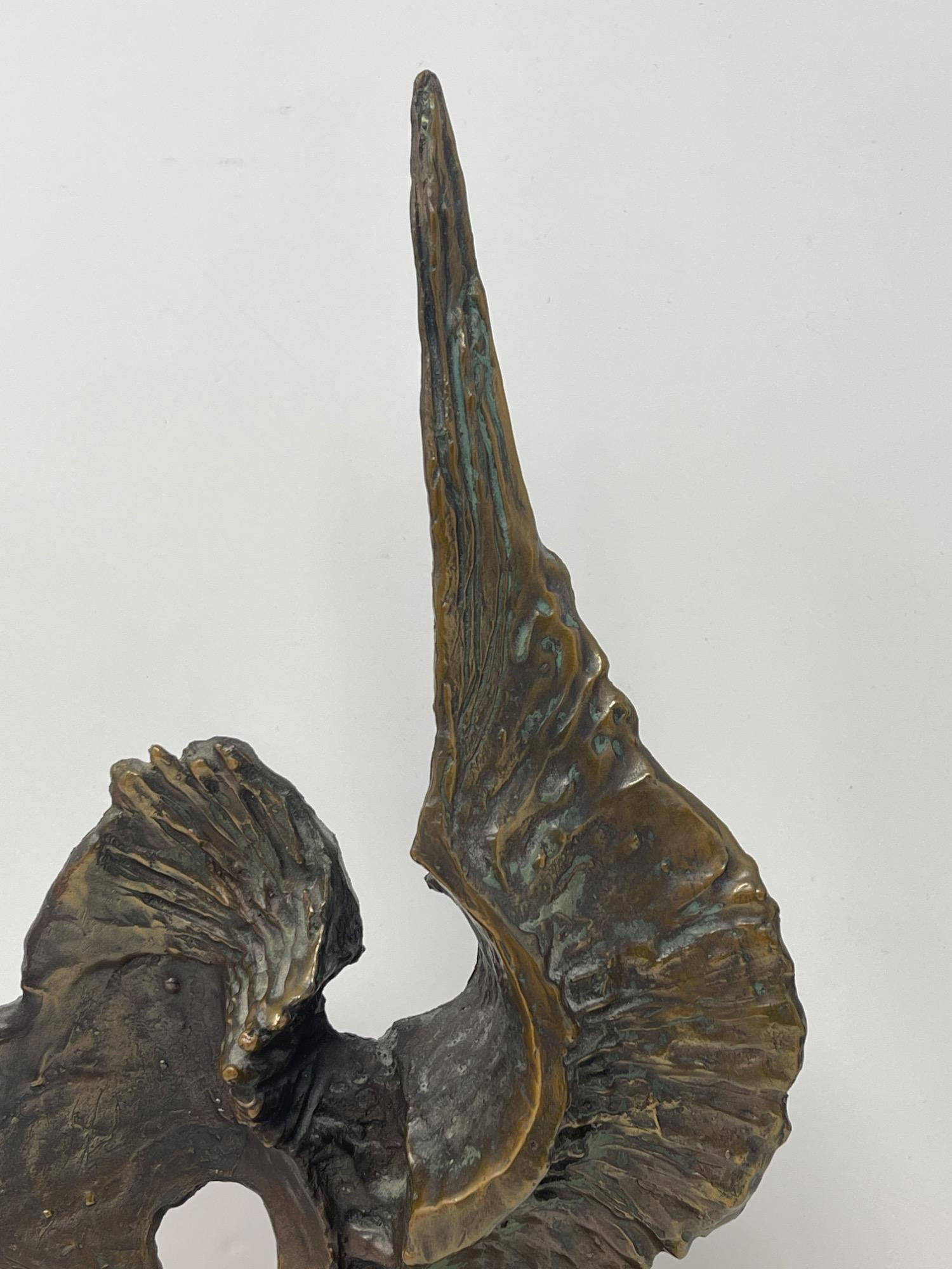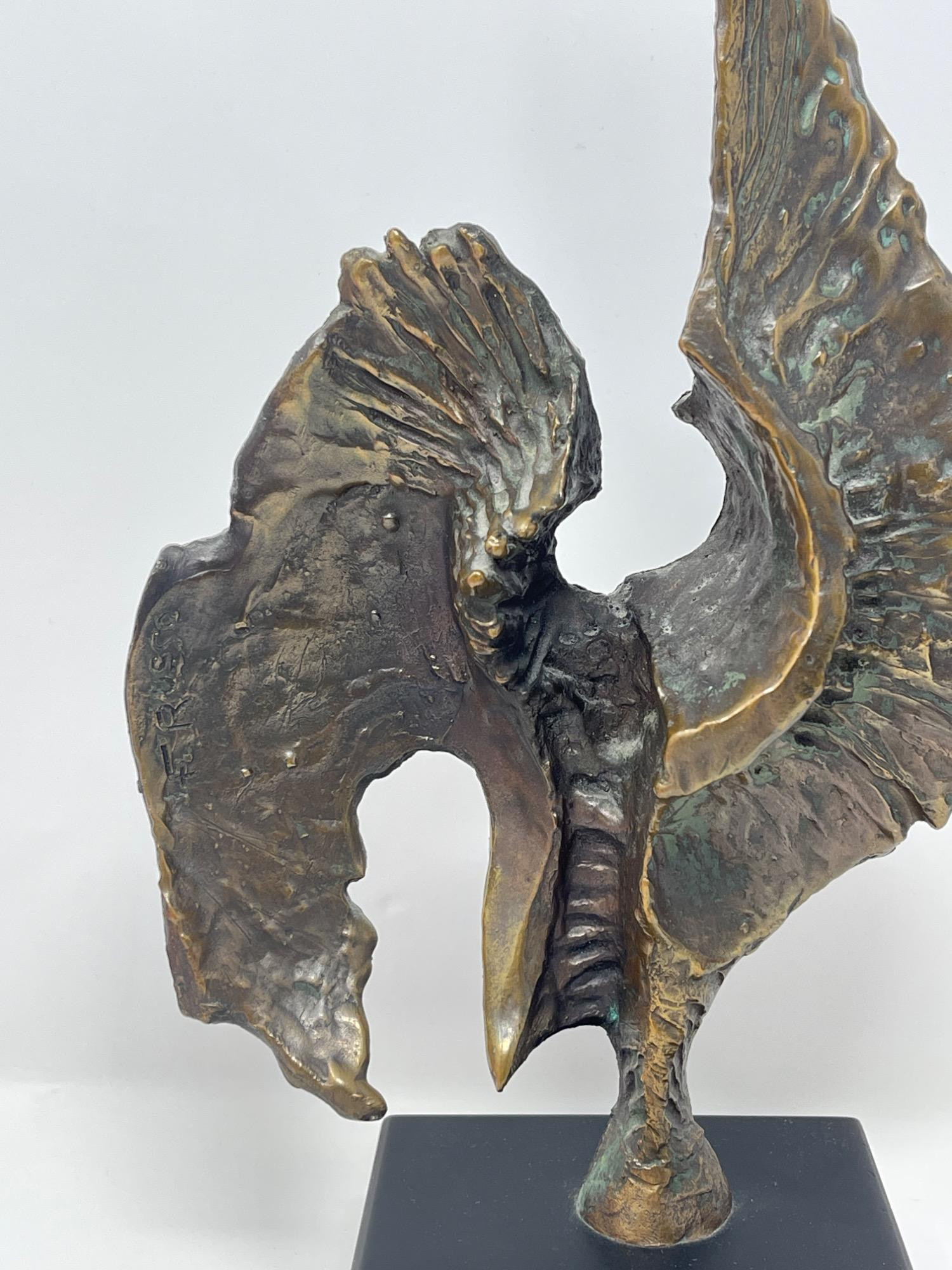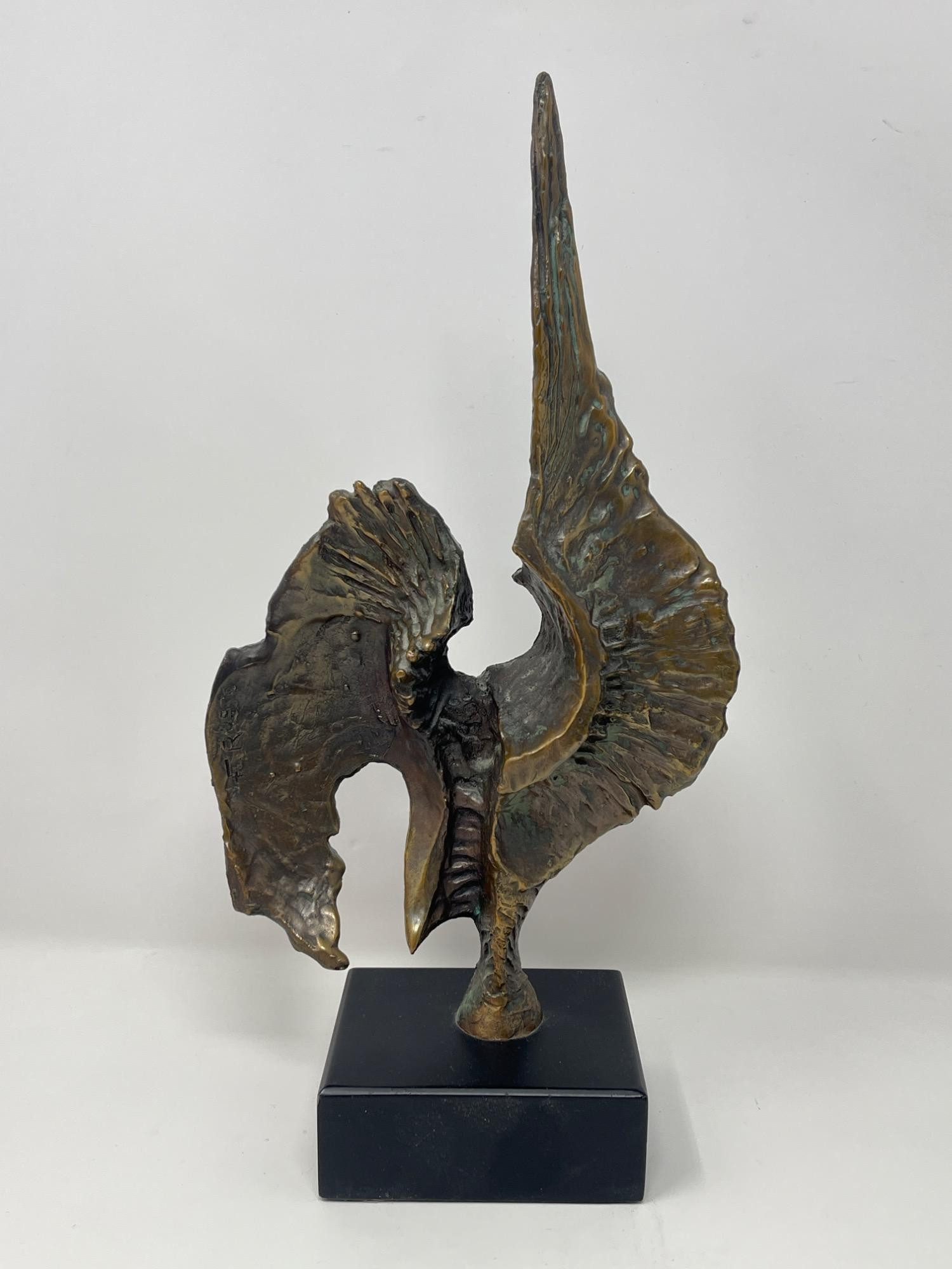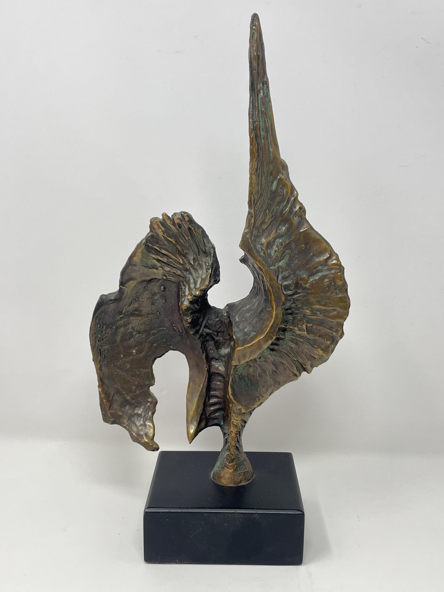 Mid Century Franco Russo Sunburst Bronze Sculpture 471/800 Capture the essence of mid-century abstract art with this limited edition 'Starburst' bronze sculpture by Italian artist Franco Russo. This piece is number 471 out of 800, standing 12½ inches tall and cast in the traditional lost-wax method. It features an elegant design inspired by natural forms, with a rich bronze patina that highlights its dynamic textures. Mounted on a matte-finish black base, it makes a striking addition to any collection. Artist Background: