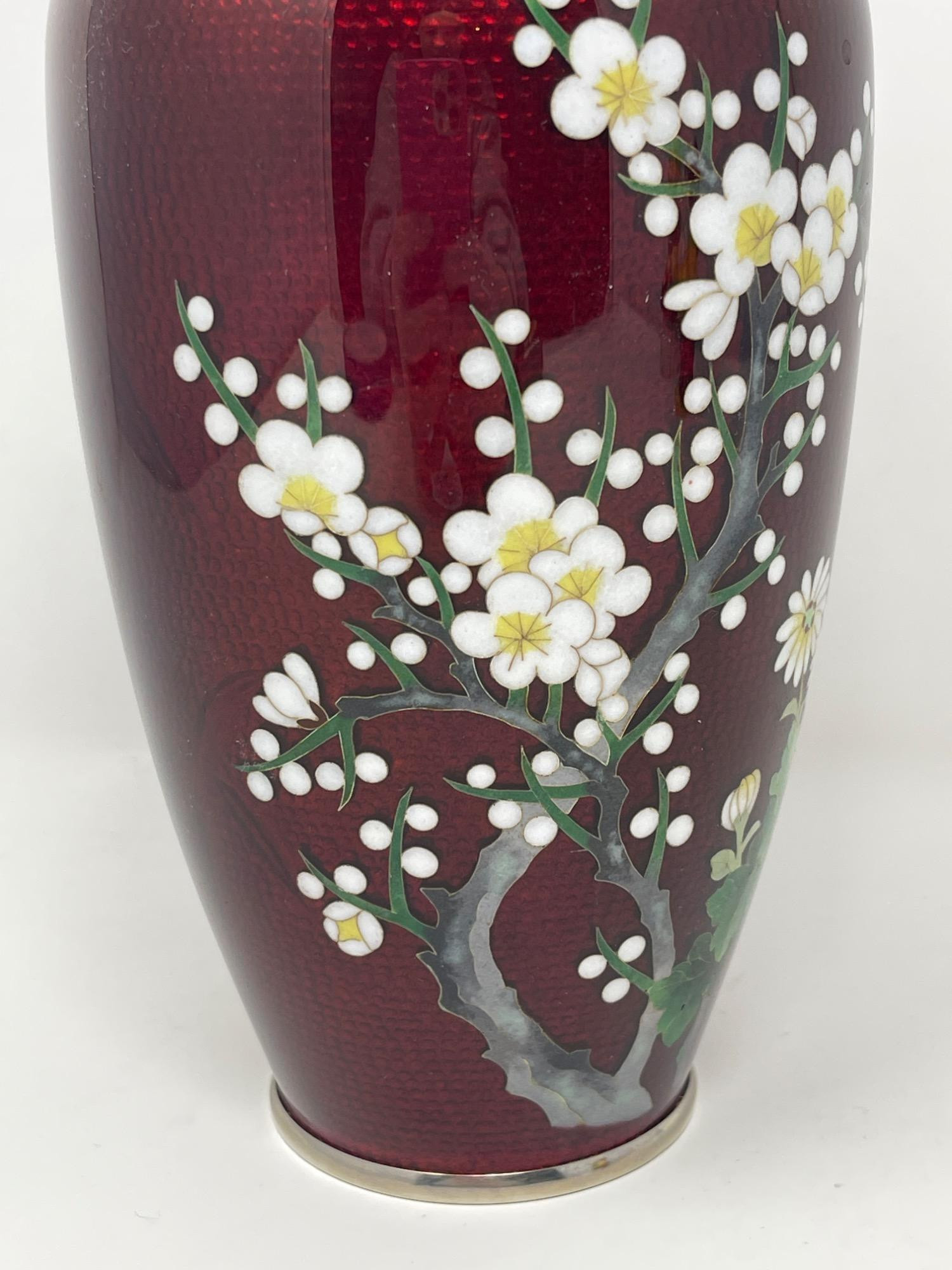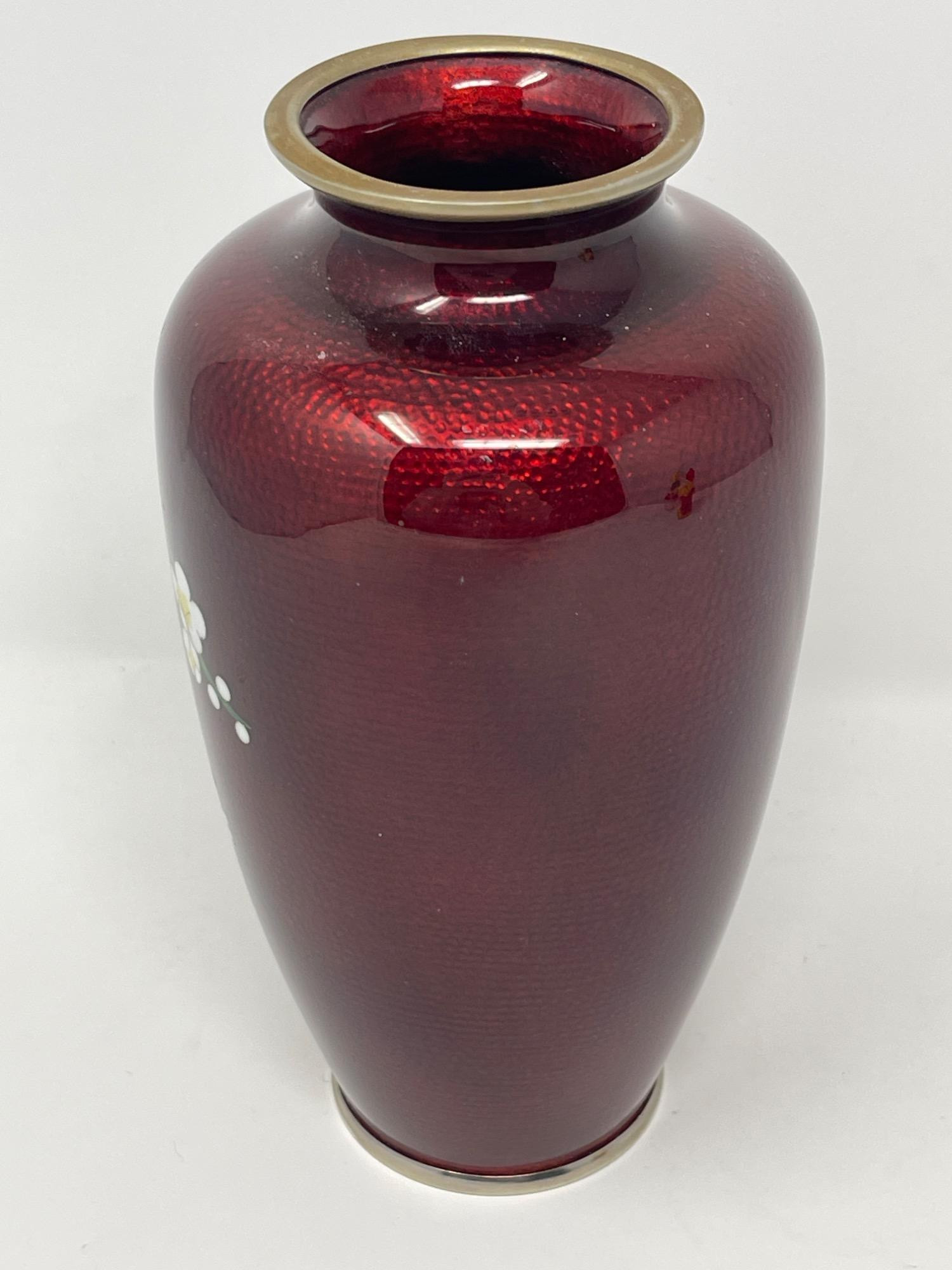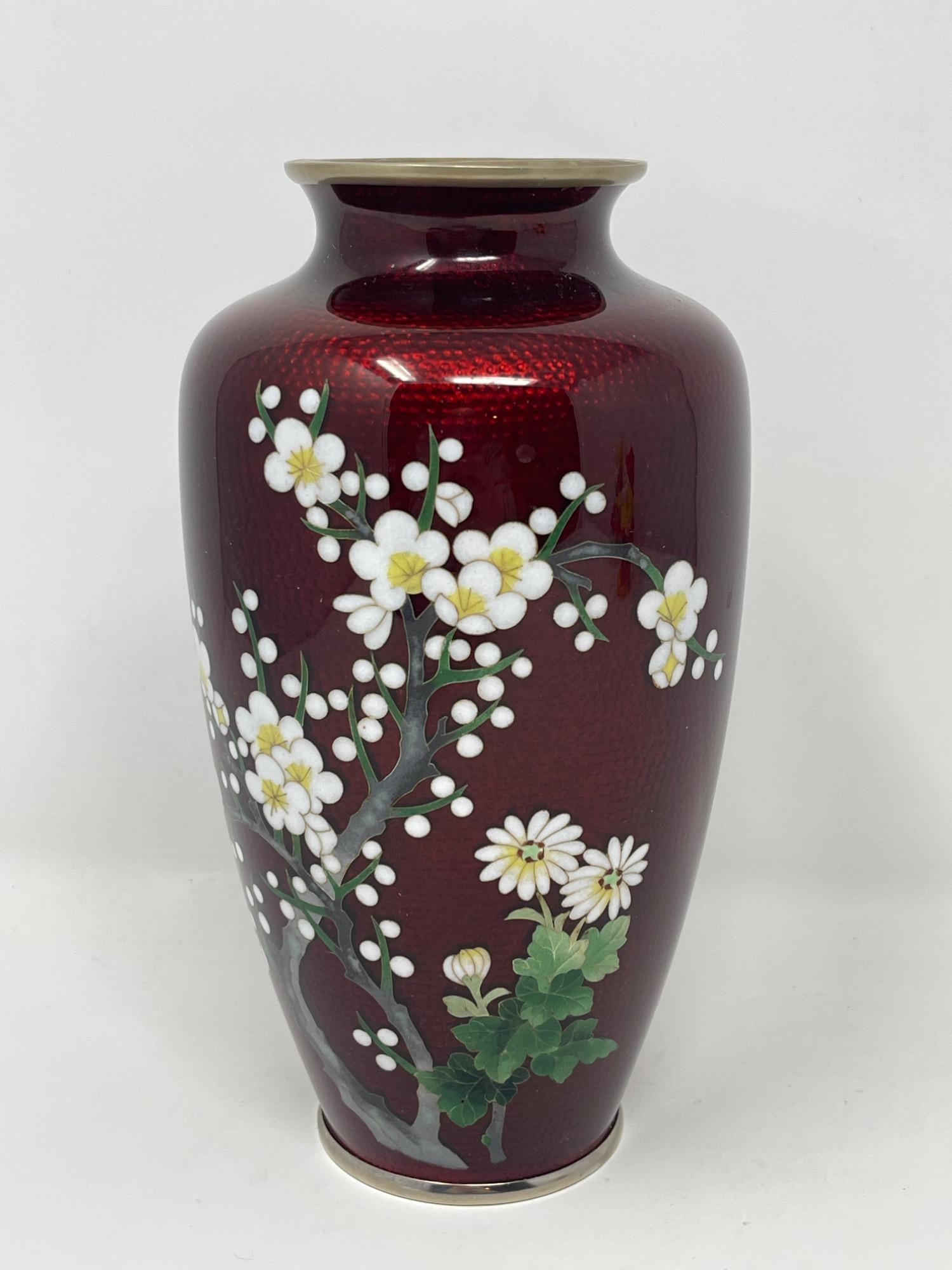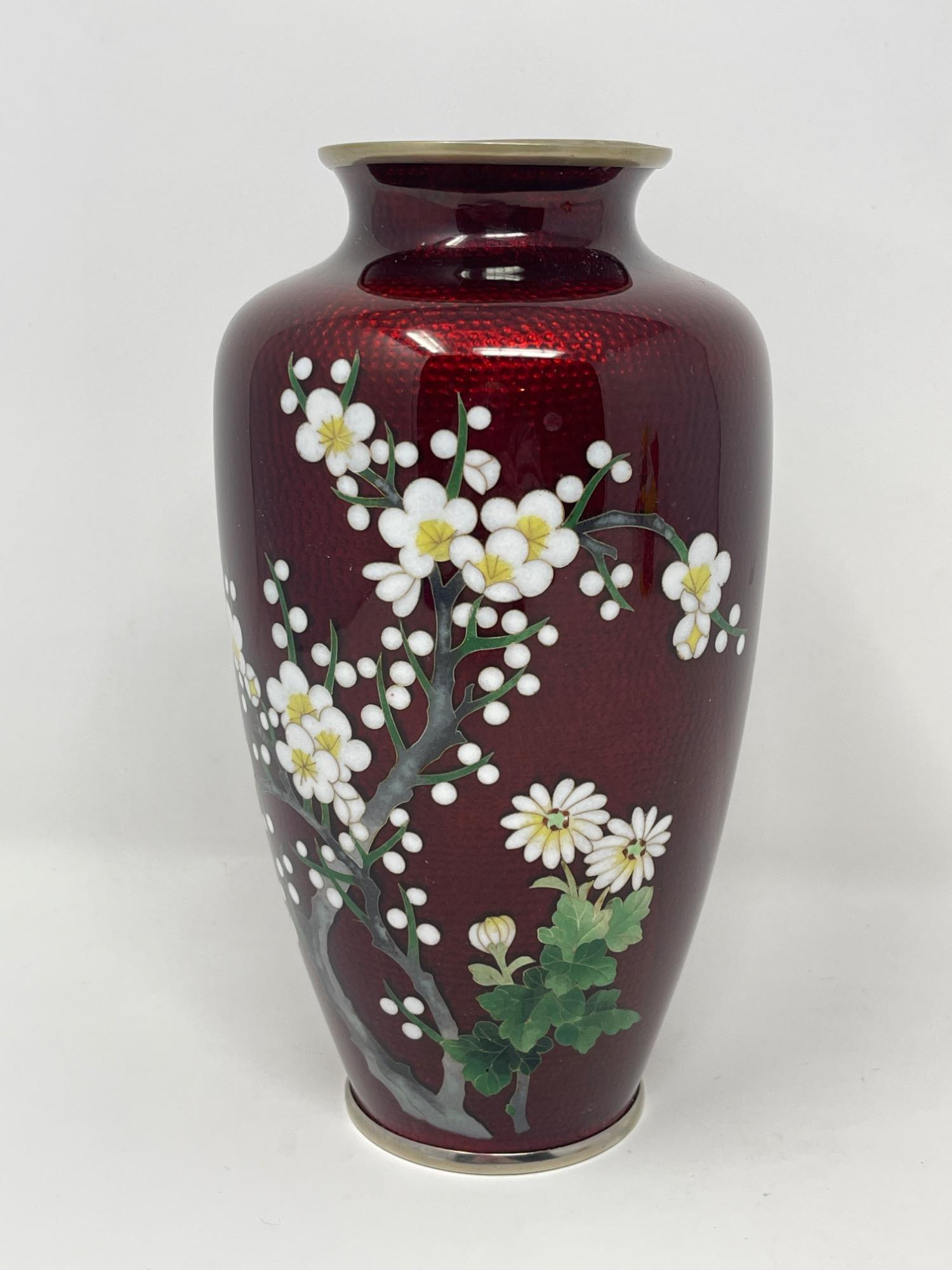 Lot # 6 - Vintage Japanese Ginbari Cloisonné Vase - Ruby Red w/ Sakura Motifs
