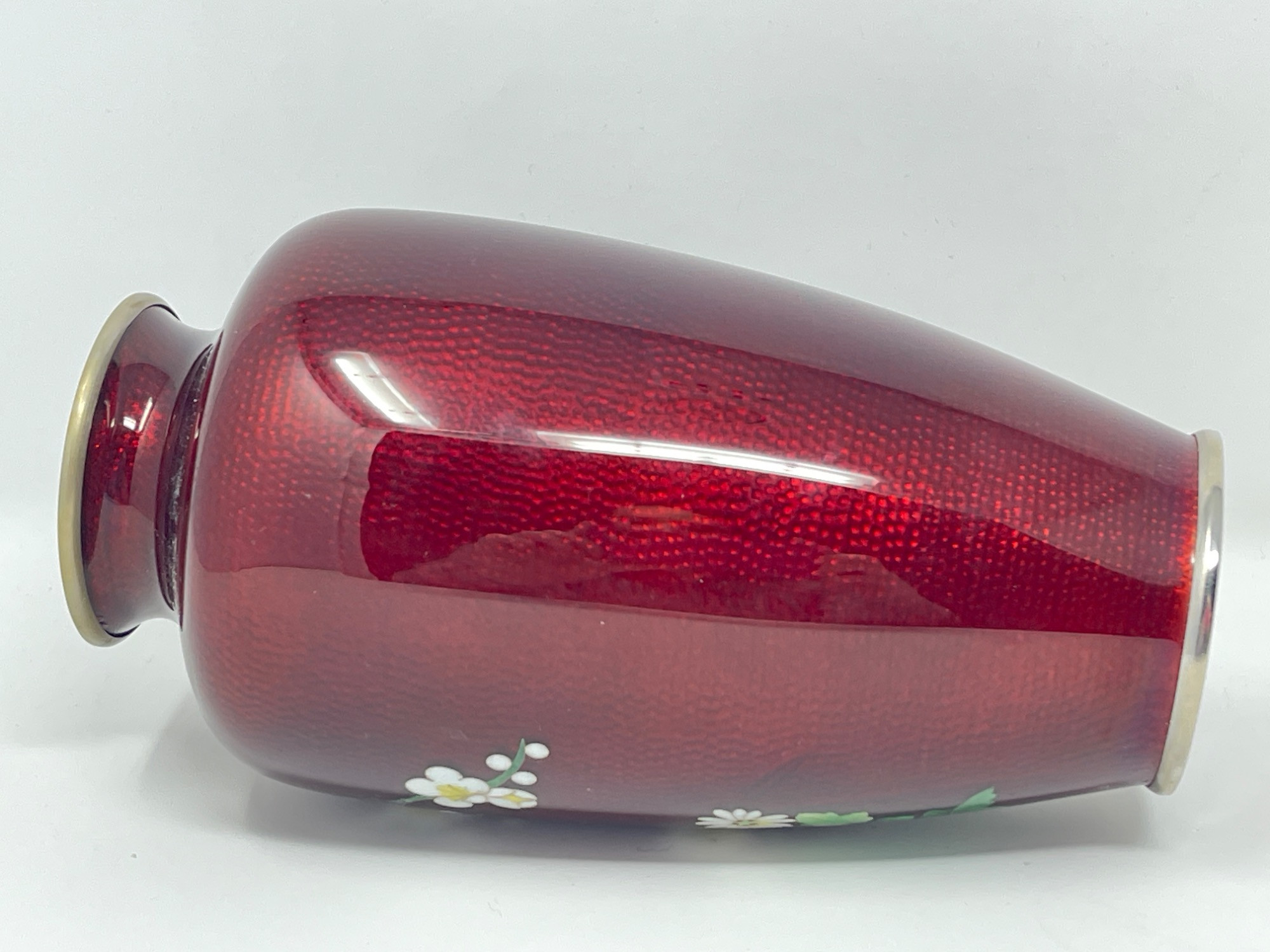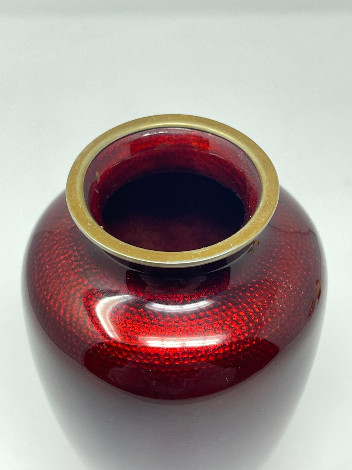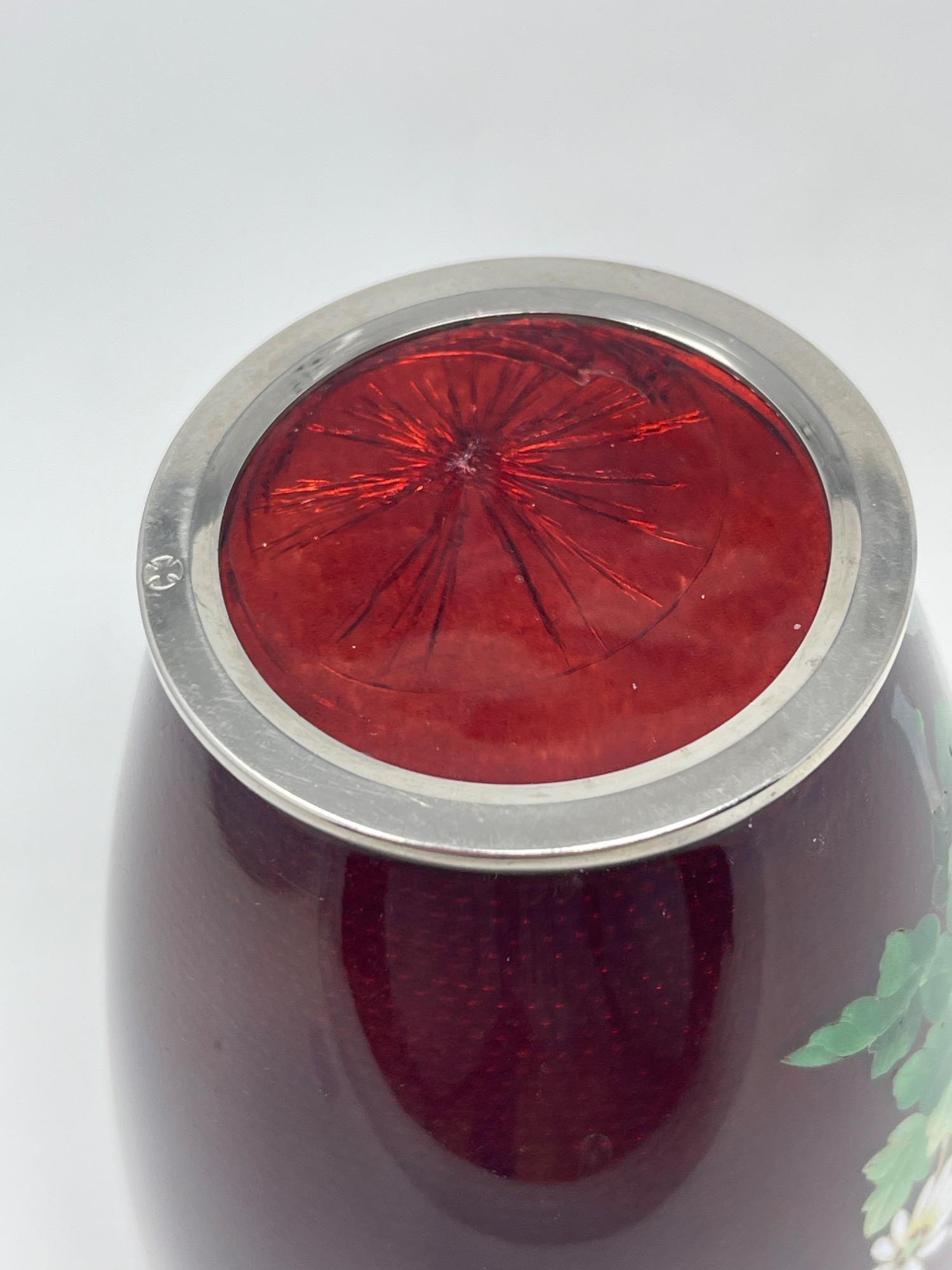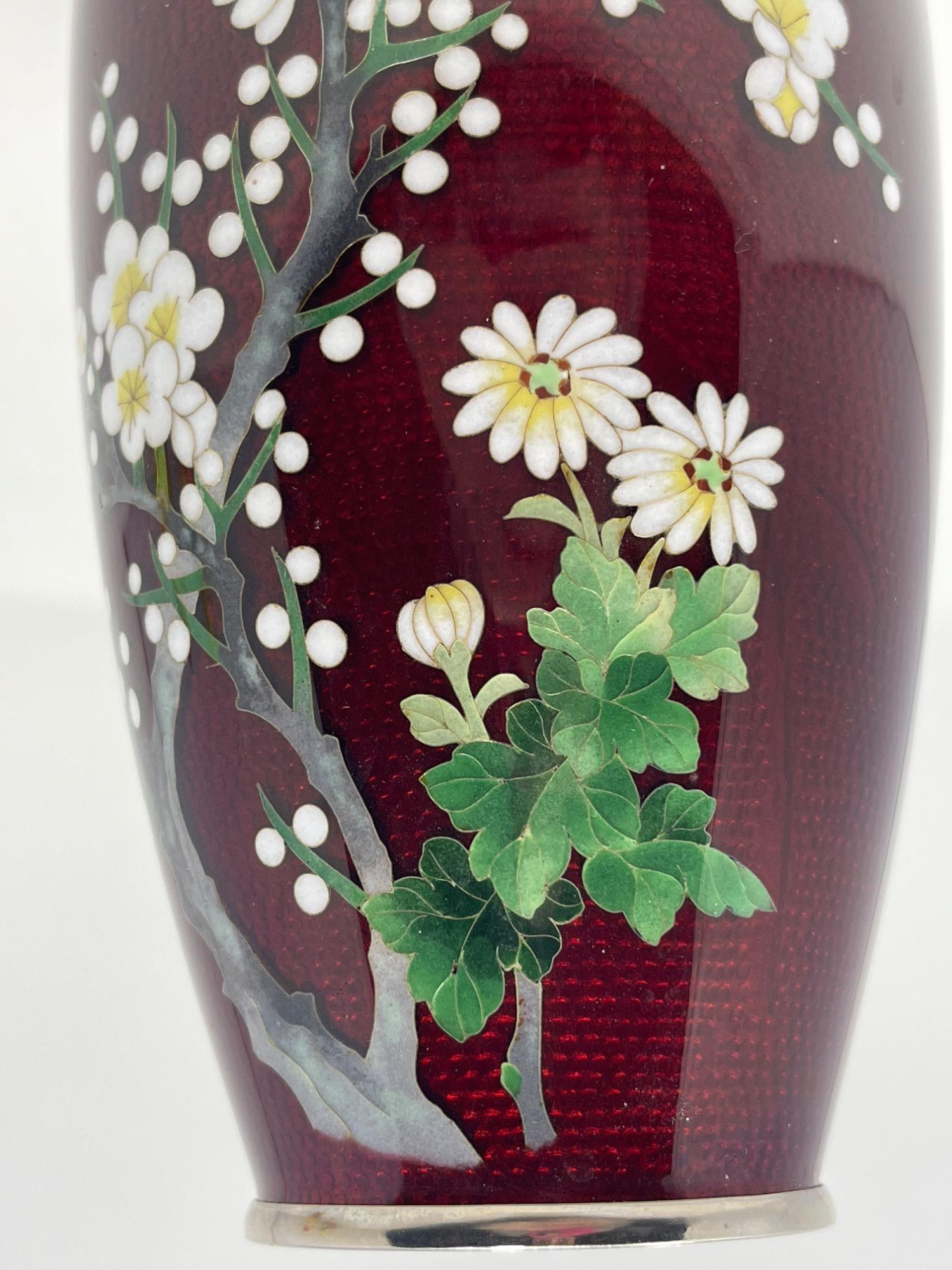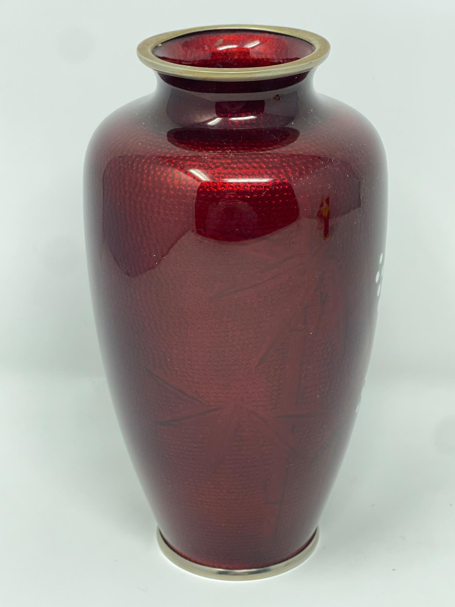Lot # 6 - Vintage Japanese Ginbari Cloisonné Vase - Ruby Red w/ Sakura Motifs