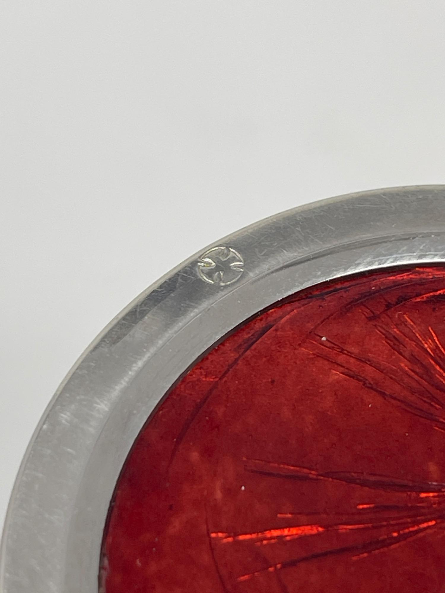 Vintage Japanese Ginbari Cloisonné Vase - Ruby Red w/ Sakura Motifs This exquisite vintage Japanese Ginbari cloisonné vase showcases the traditional beauty of sakura (cherry blossoms) and chrysanthemum motifs on a vibrant ruby red background. The intricate design and shimmering foil technique reflect the light beautifully, creating a stunning visual effect. Perfect for collectors of fine Asian antiques, this vase stands as a testament to skilled craftsmanship and timeless style.