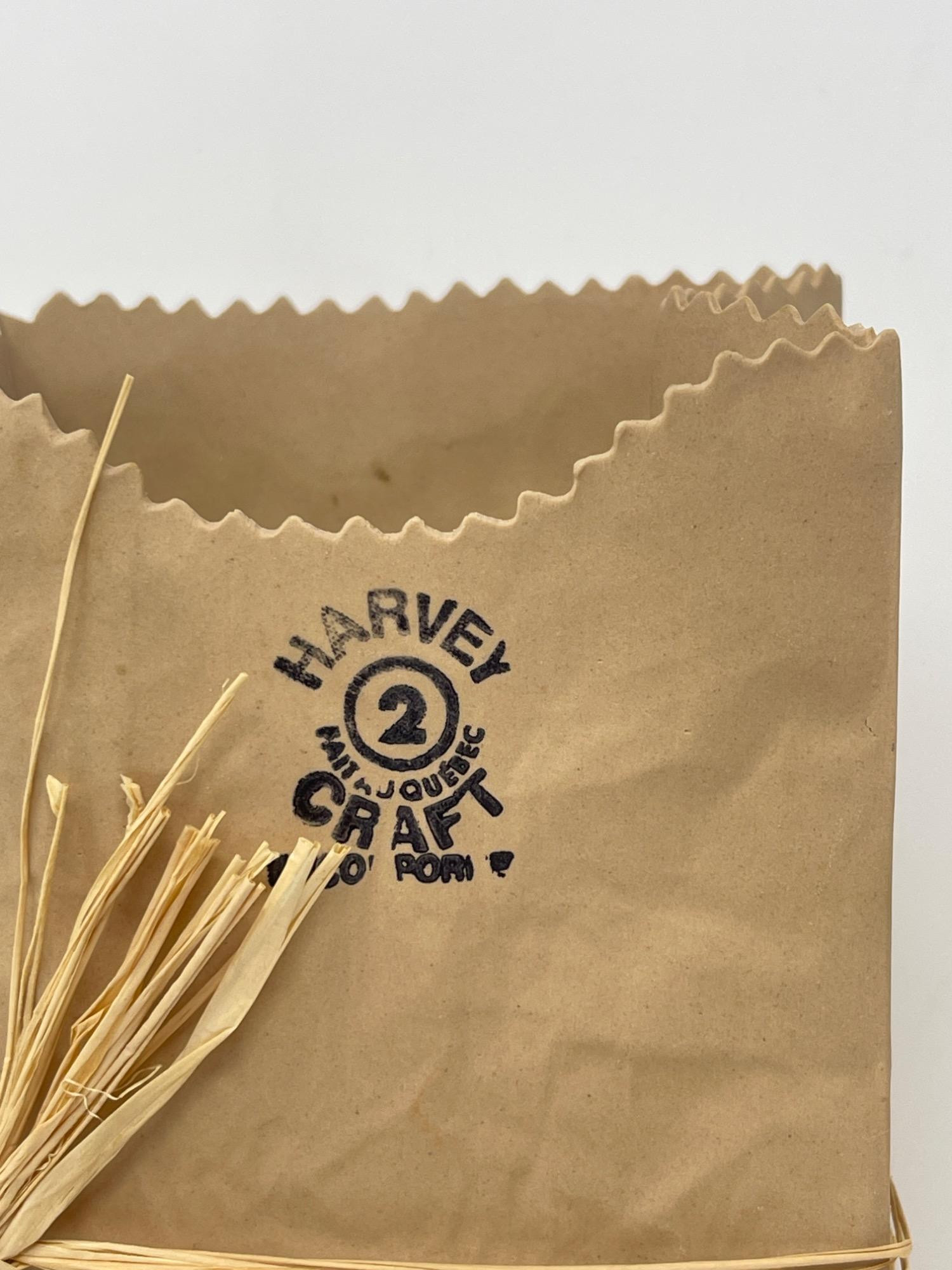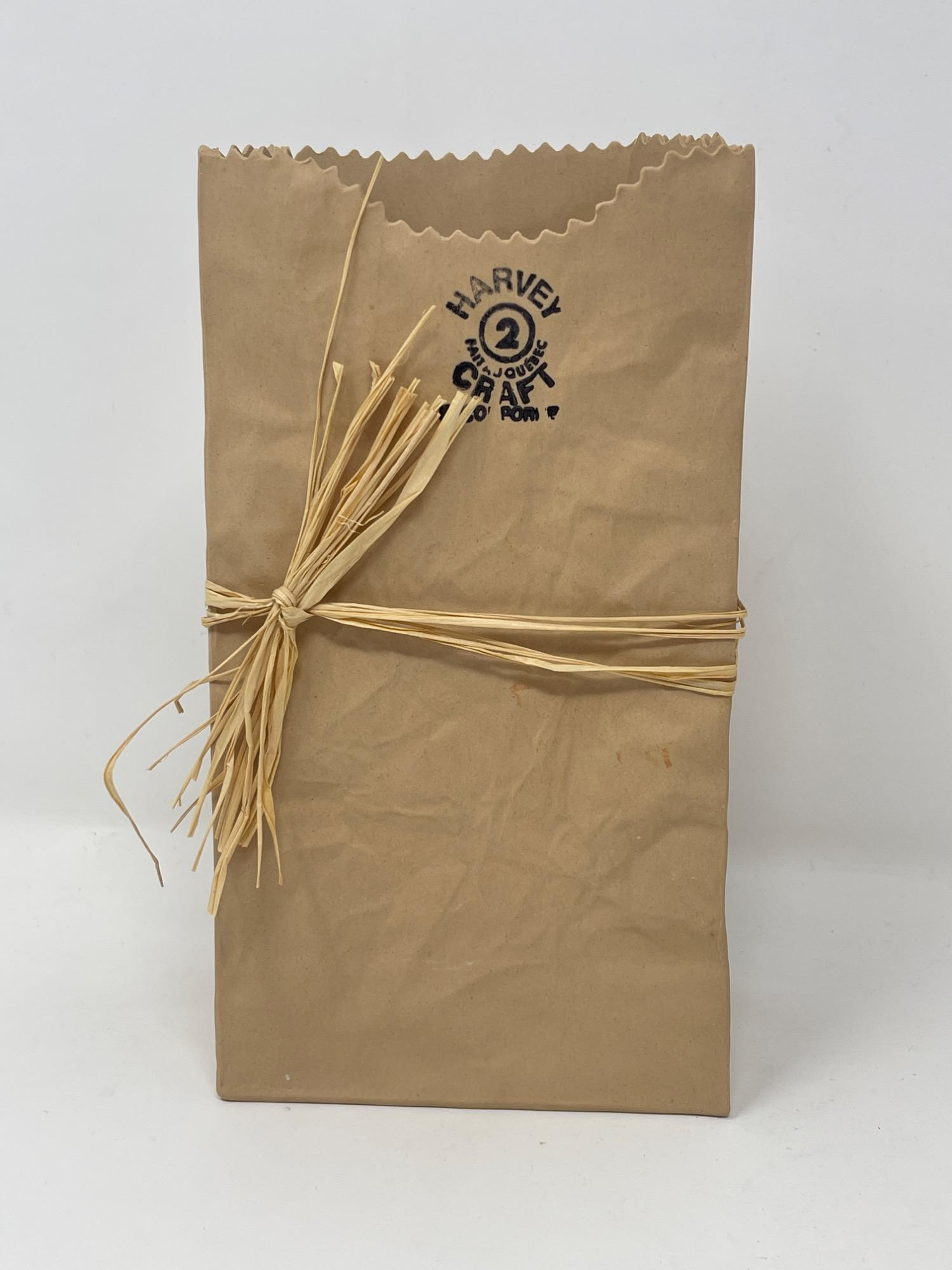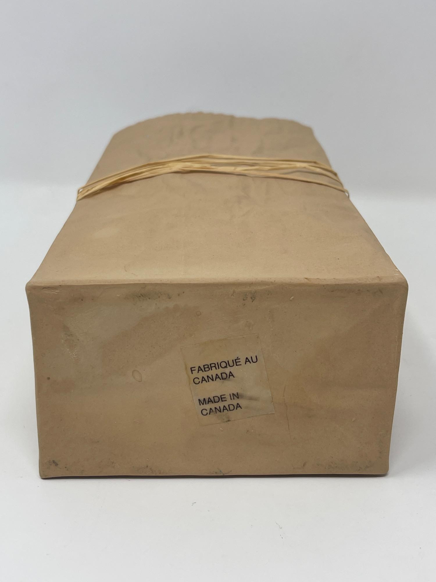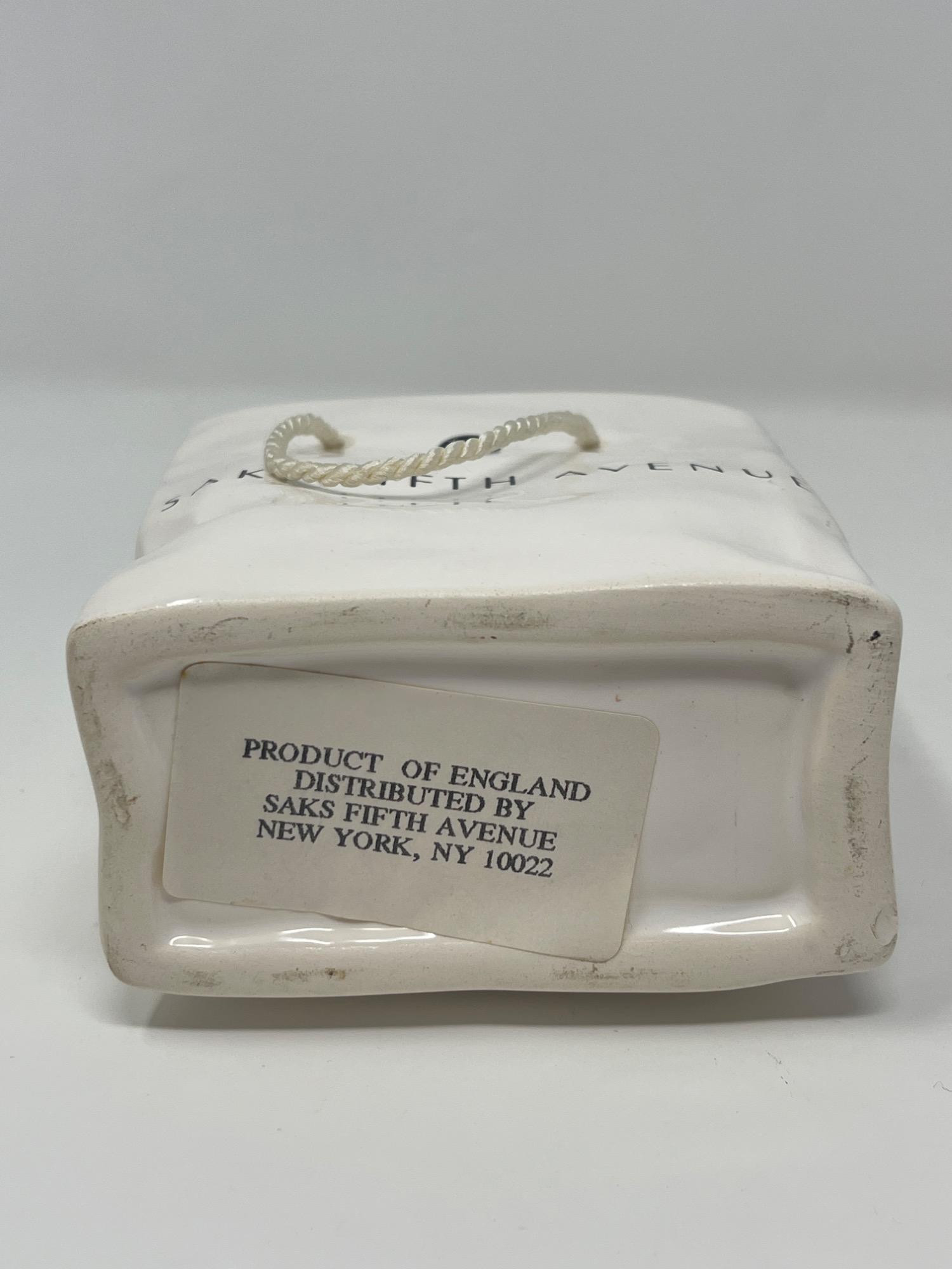 Ceramic Shopping Bag Sculptures - Saks Fifth Avenue & Harvey Craft Add a touch of whimsical elegance to your decor with these ceramic sculptures, creatively modeled after shopping bags from prestigious retailer Saks Fifth Avenue and Harvey Craft. The Saks bag measures 4 inches in height, while the Harvey bag stands at 7.25 inches, each crafted with meticulous attention to detail to mimic the iconic bag designs. These pieces are perfect for collectors of unique home decor or as chic, conversation-starting accessories in any space. Condition: Light stains and scratches.